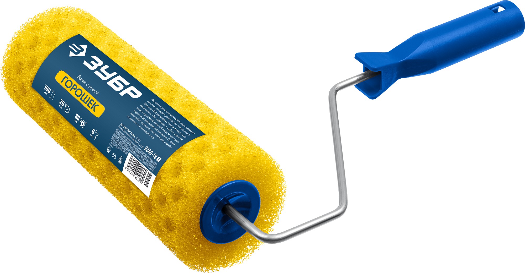 Малярный валик с ручкой, ЗУБР ГОРОШЕК СТРУКТУРНЫЙ ПОРОЛОН 80 мм, 230 мм, МАСТЕР 0369-24_z01 - предназначен для отделочных работ.