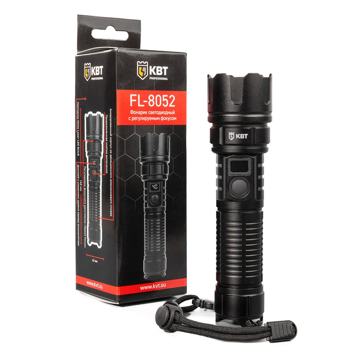 Фонарик ручной FL-8052 серия ПРОФИ (КВТ) 103874 — светодиодный фонарь с регулируемым фокусом и высокой яркостью для профессионального и бытового применения.