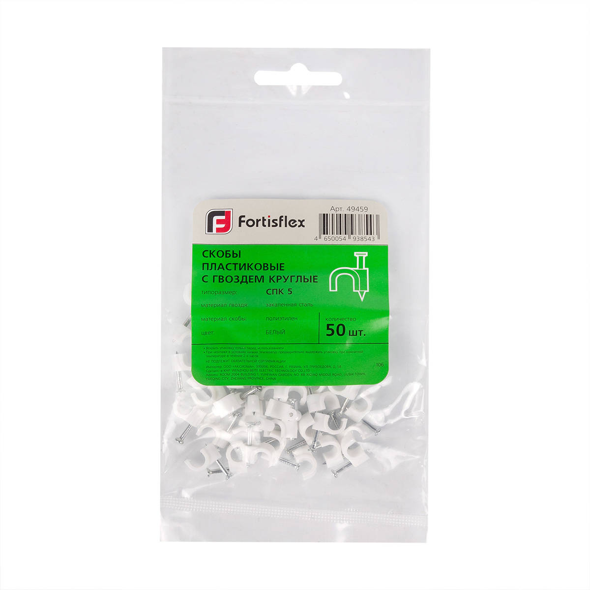 Скоба пластиковая СПК 12 (50шт) Fortisflex 103938 — предназначена для монтажа круглых кабелей и проводов на деревянных поверхностях и гипсокартоне.