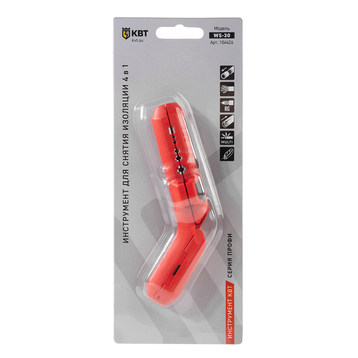 Инструмент для снятия изоляции WS-30 серия ПРОФИ КВТ арт. 104426 — предназначен для снятия изоляции с проводов сечением 0.25–4.0 мм².