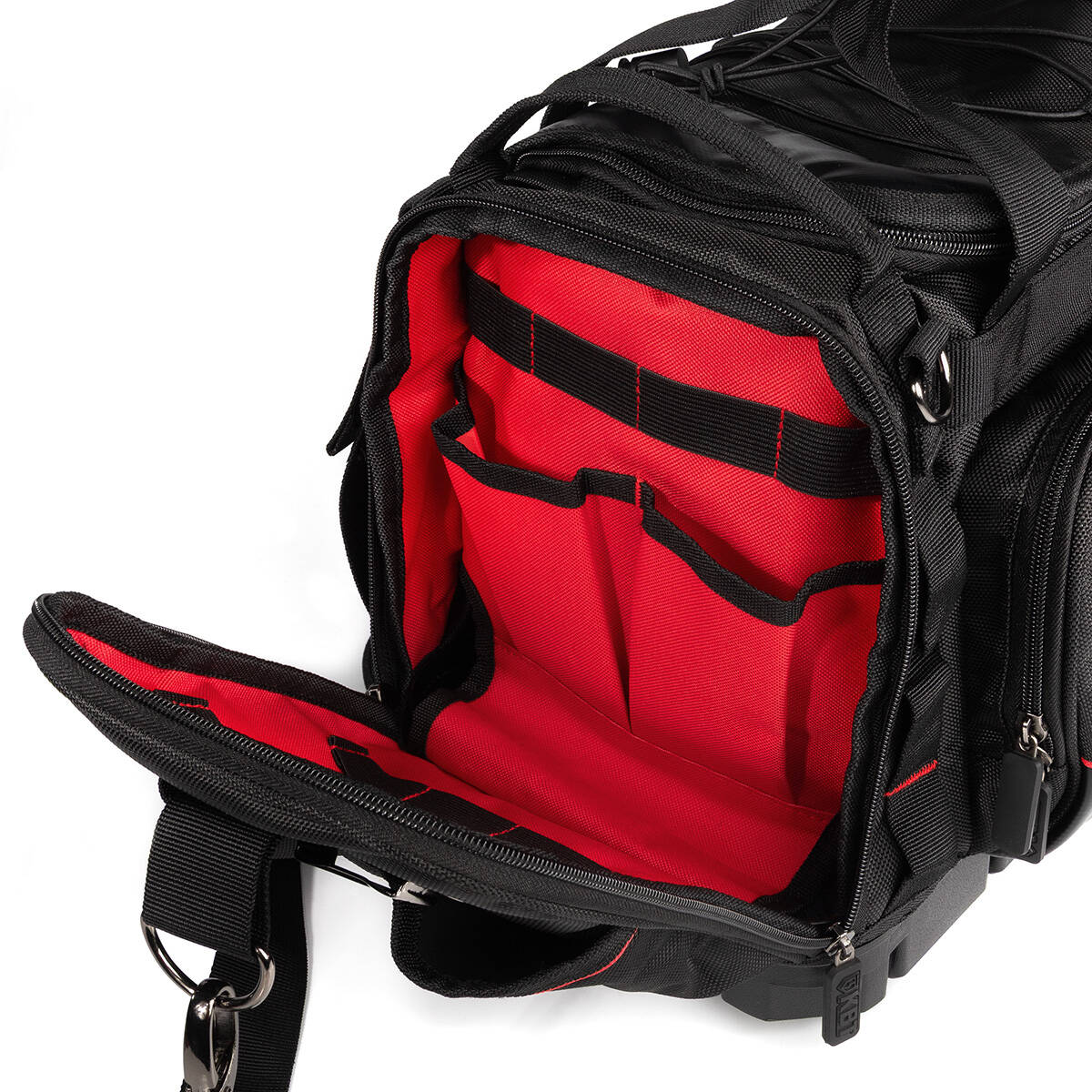 2 боковых отделения на молнии с внутренними карманами и крепежными элементами из эластичной ленты
