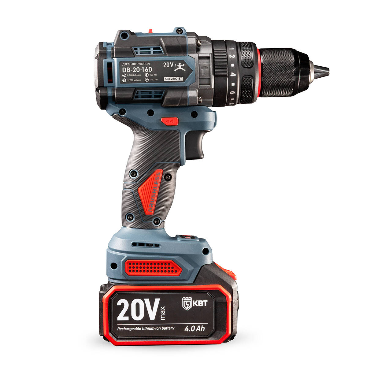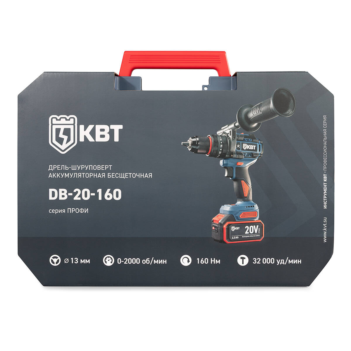 Дрель-шуруповерт DB-20-160 серия ПРОФИ КВТ арт. 104531 — предназначен для сверления отверстий в различных материалах, закручивания и откручивания резьбовых соединений и ударного сверления отверстий в легком бетоне.
