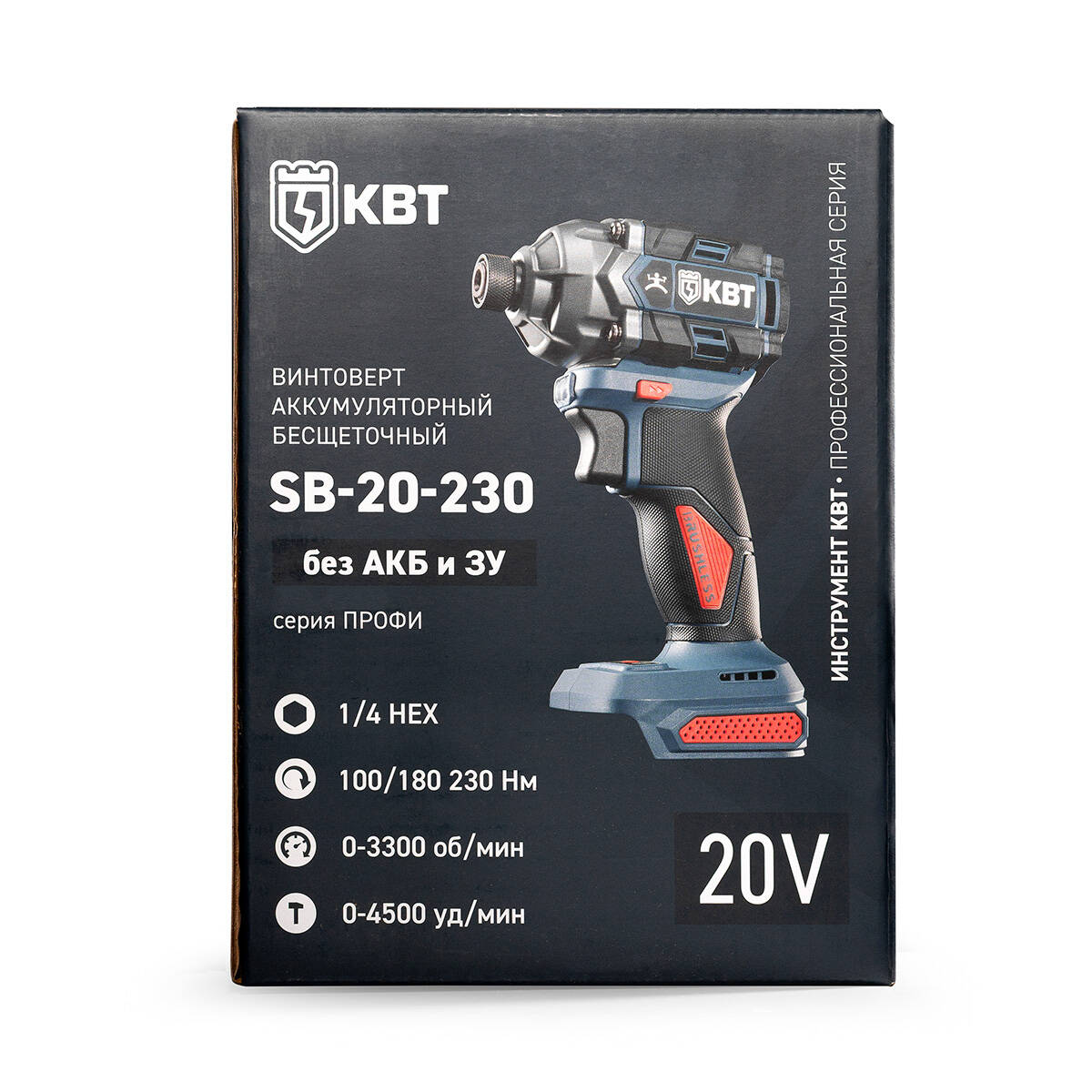 Винтоверт SB-20-230 без АКБ и ЗУ серия ПРОФИ (КВТ) 104535 - предназначен для работы с резьбовым крепежом (винты, болты и гайки).