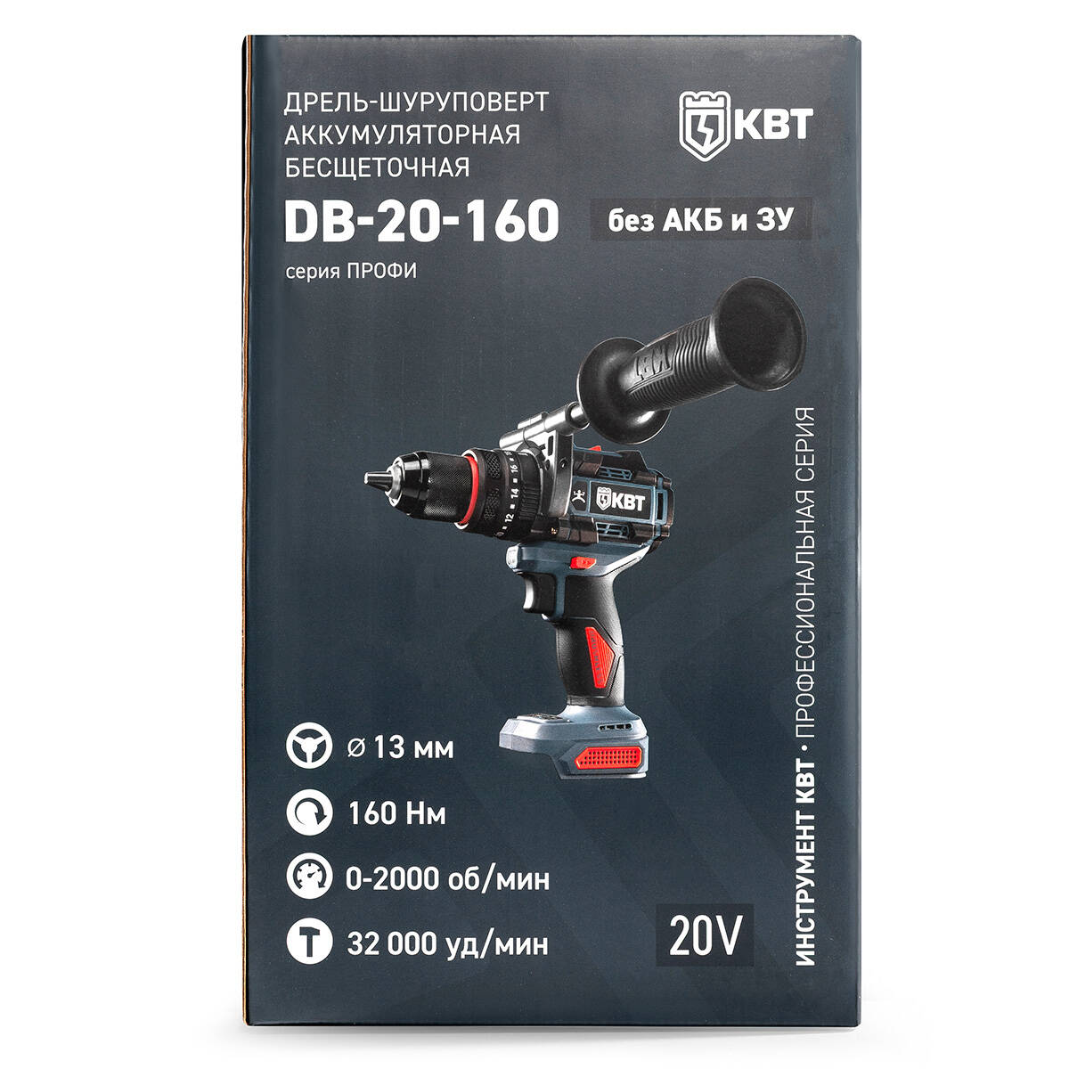 Ударная дрель-шуруповерт DB-20-160 без АКБ и ЗУ серия ПРОФИ (КВТ) 104539 - предназначена для сверления отверстий в различных материалах, в том числе, в легком бетоне (режим сверления с ударом), закручивание и откручивание резьбовых соединений.