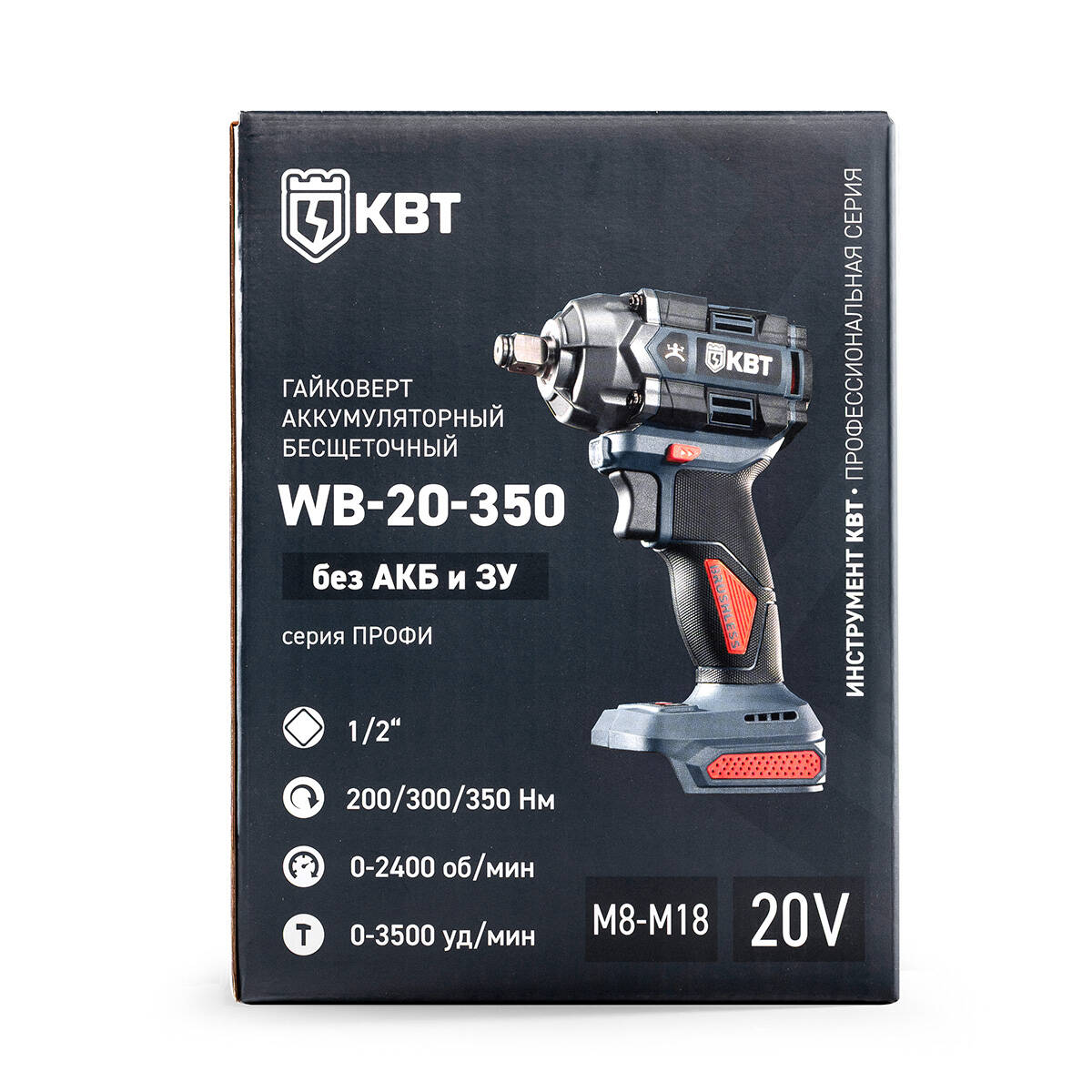 Гайковерт WB-20-350 без АКБ и ЗУ серия ПРОФИ (КВТ) 104572 - предназначен для работы с резьбовым крепежом (болты и гайки).