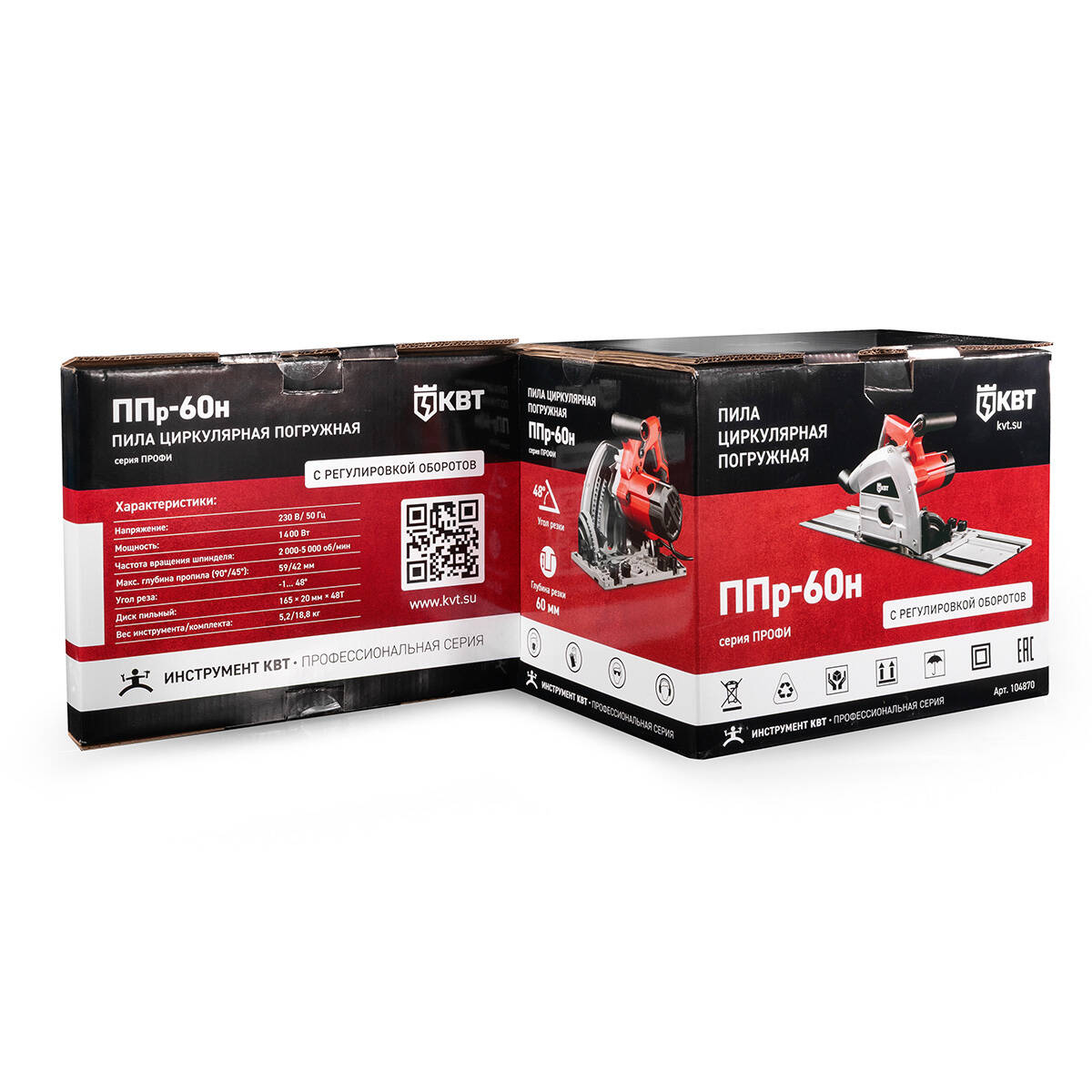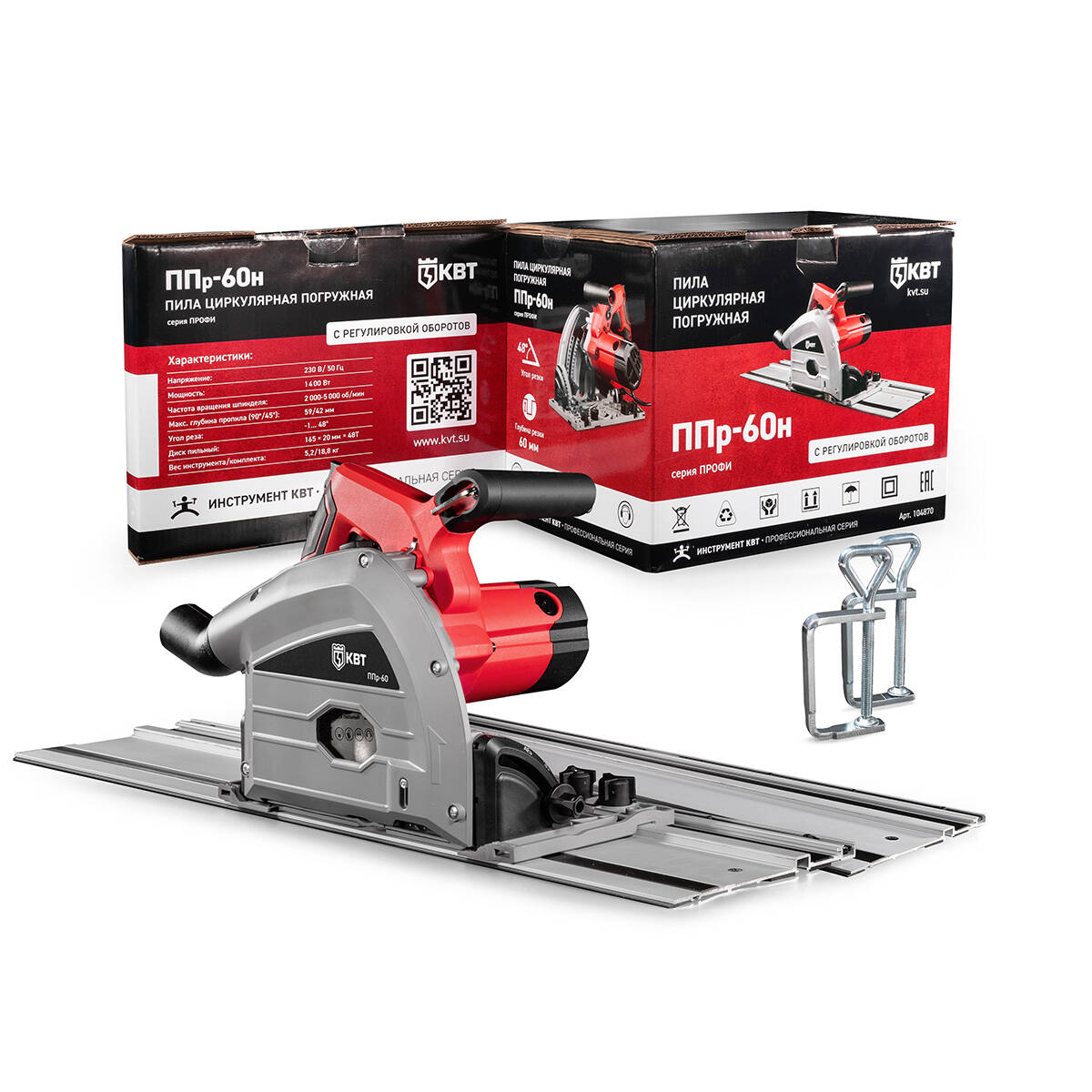 Пила циркулярная погружная ППр-60н серия ПРОФИ (КВТ) 104870 - предназначена для выполнения продольных, поперечных и угловых резов в древесине, ДСП, фанере, а также пластмассах и алюминиевых профилях с использованием соответствующего пильного диска.