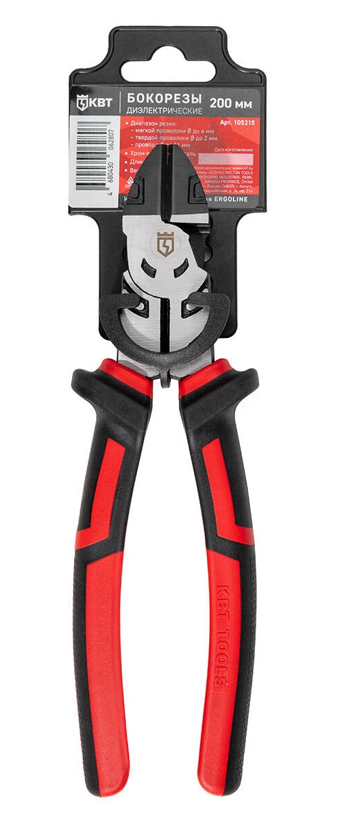 Бокорезы диэлектрические 200 мм серия ERGOLINE (КВТ) 105215 - предназначены для резки медных и алюминевых проводов, мягкой и твердой стальной проволоки.
