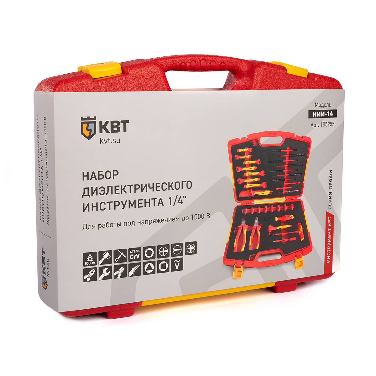 Набор диэлектрического инструмента НИИ-14 серия ПРОФИ КВТ арт. 105955 — монтаж и демонтаж шестигранных болтов и гаек под напряжением до 1000В.