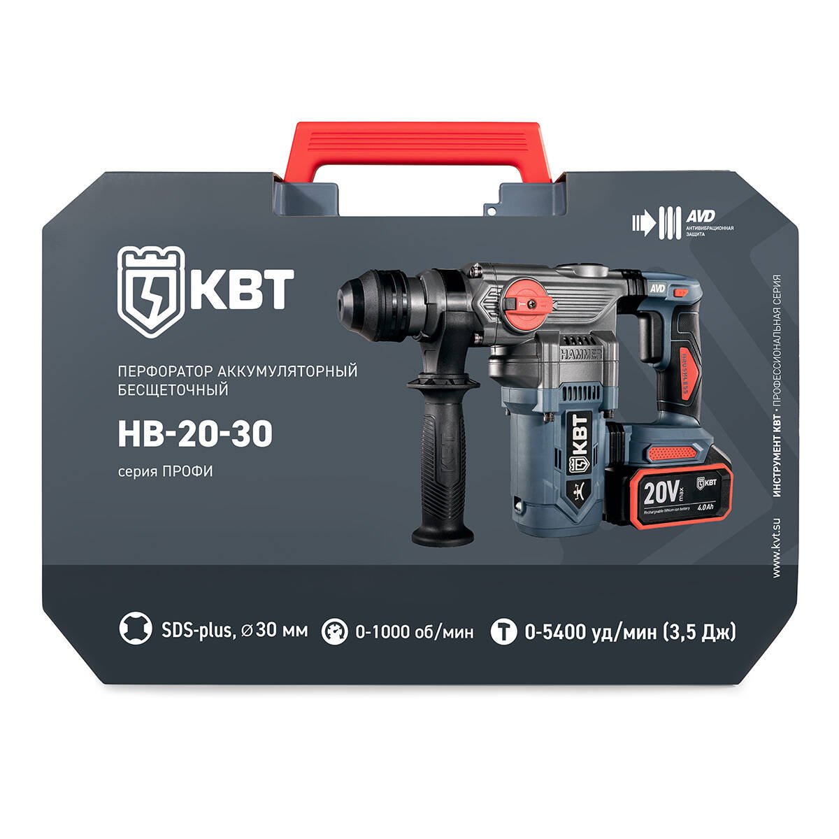 Перфоратор аккумуляторный HB-20-30 SDS-Plus до 30 мм серия ПРОФИ КВТ арт. 106055 — для ударного сверления отверстий в бетоне, кирпиче, камне, а также для проведения долбежных работ.