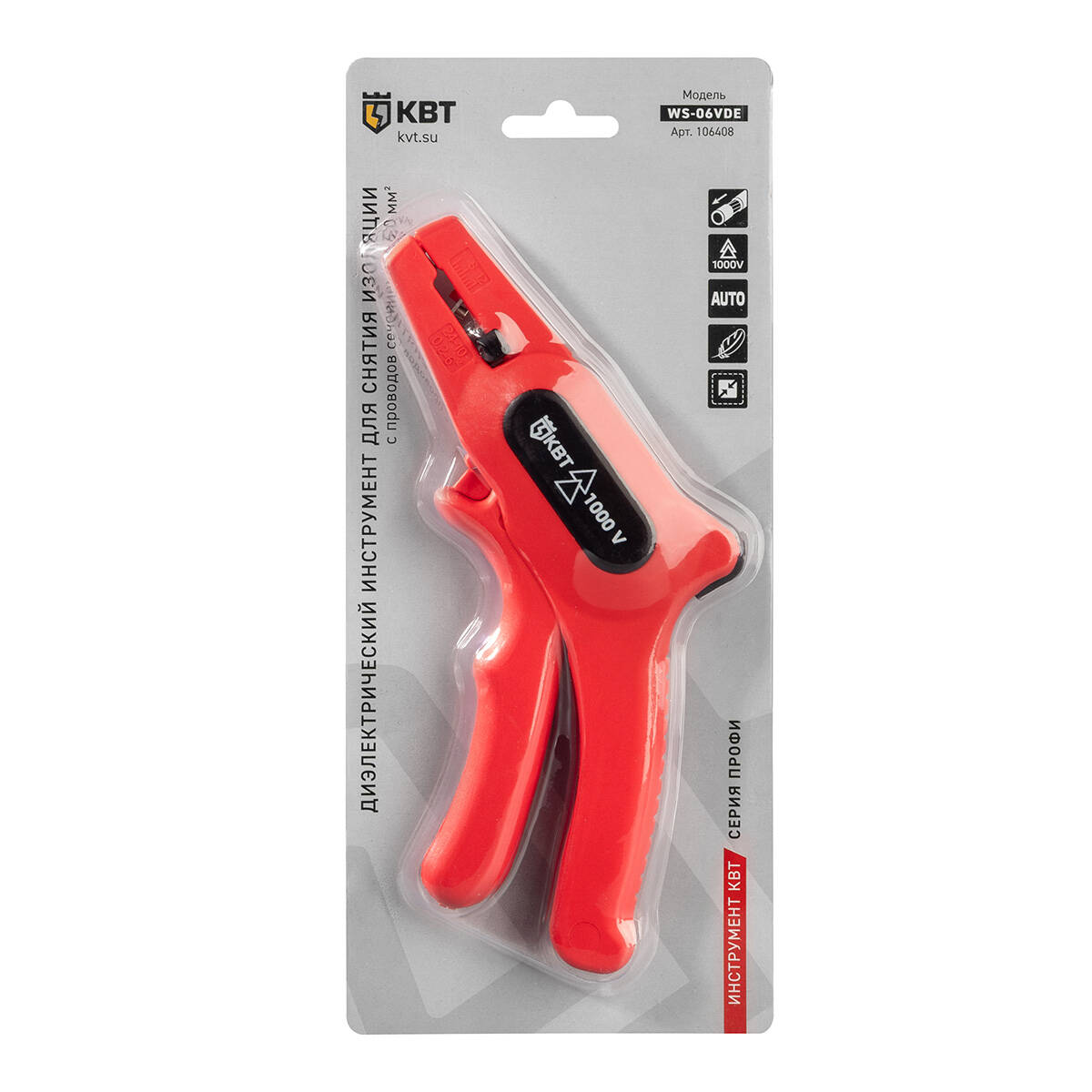WS-06VDE Инструмент для снятия изоляции диэлектрический серия ПРОФИ КВТ арт. 106408 — торцевой стриппер пистолетного типа для снятия жильной изоляции с проводов 0.2–6.0 мм².