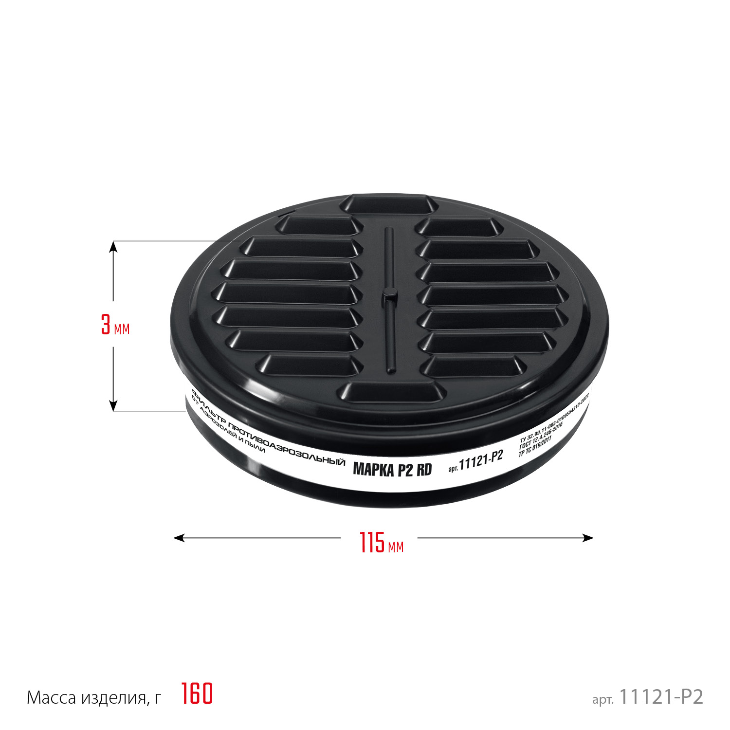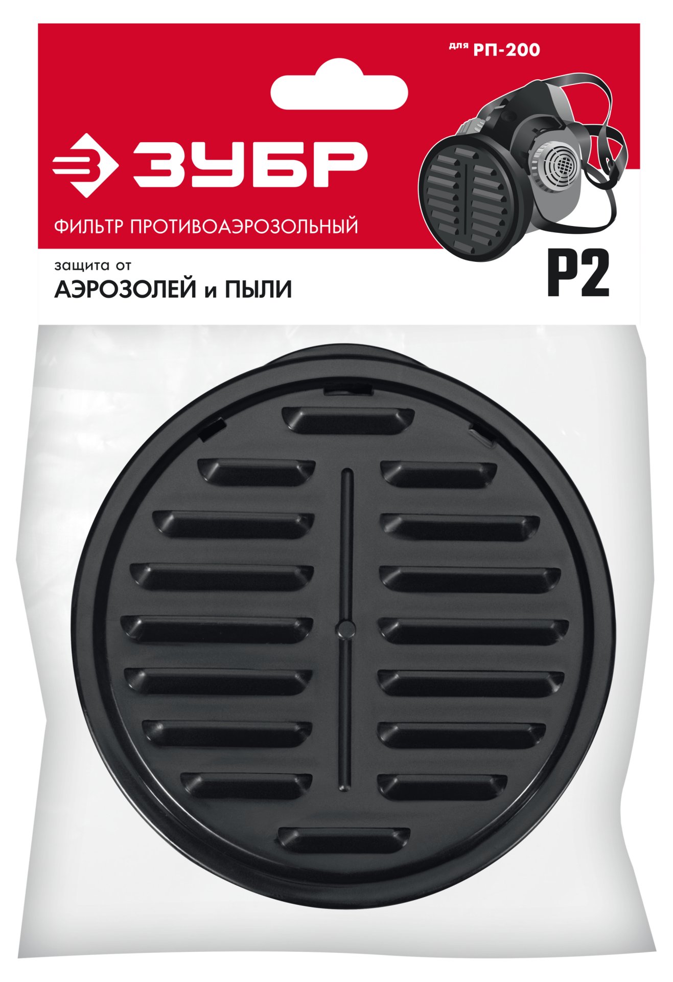 Противоаэрозольный фильтр для РП-200 ЗУБР Р2 марка Р2, 1шт. 11121-P2 - применяется в сборе с фильтрующей полумаской для защиты органов дыхания от вредных веществ в виде пыли и аэрозолей.