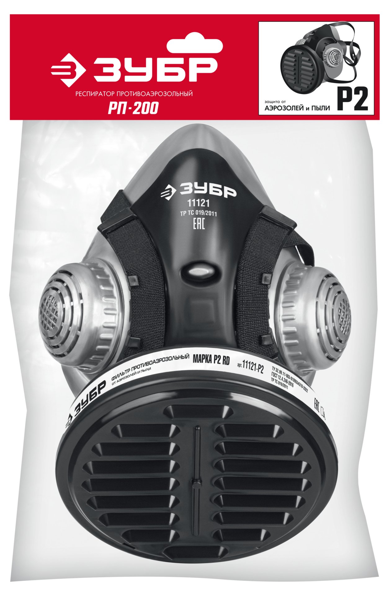 Противоаэрозольный респиратор, фильтр марки Р2, в комплекте, ЗУБР РП-200 11121 - предназначен для защиты органов дыхания от аэрозолей и пыли.