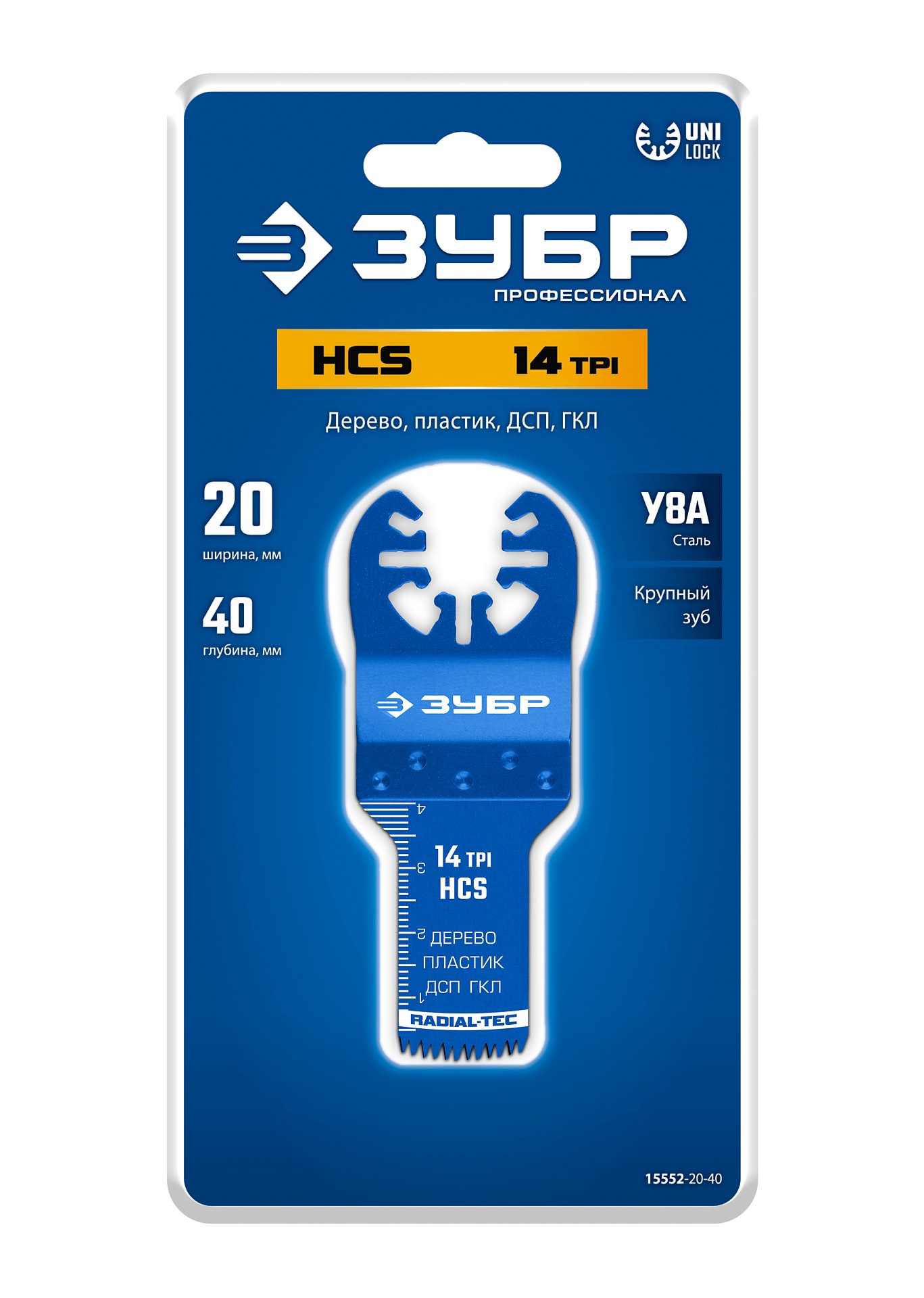 Полотно пильное, быстрый рез: дерево, пластик, ГКЛ ЗУБР HCS 20x40 мм, 14TPI 15552-20-40 - изготовлено из высококачественной углеродистой стали У8А (HCS) на автоматизированных производственных линиях с применением новейших методов шлифовки и заточки рабочей части.