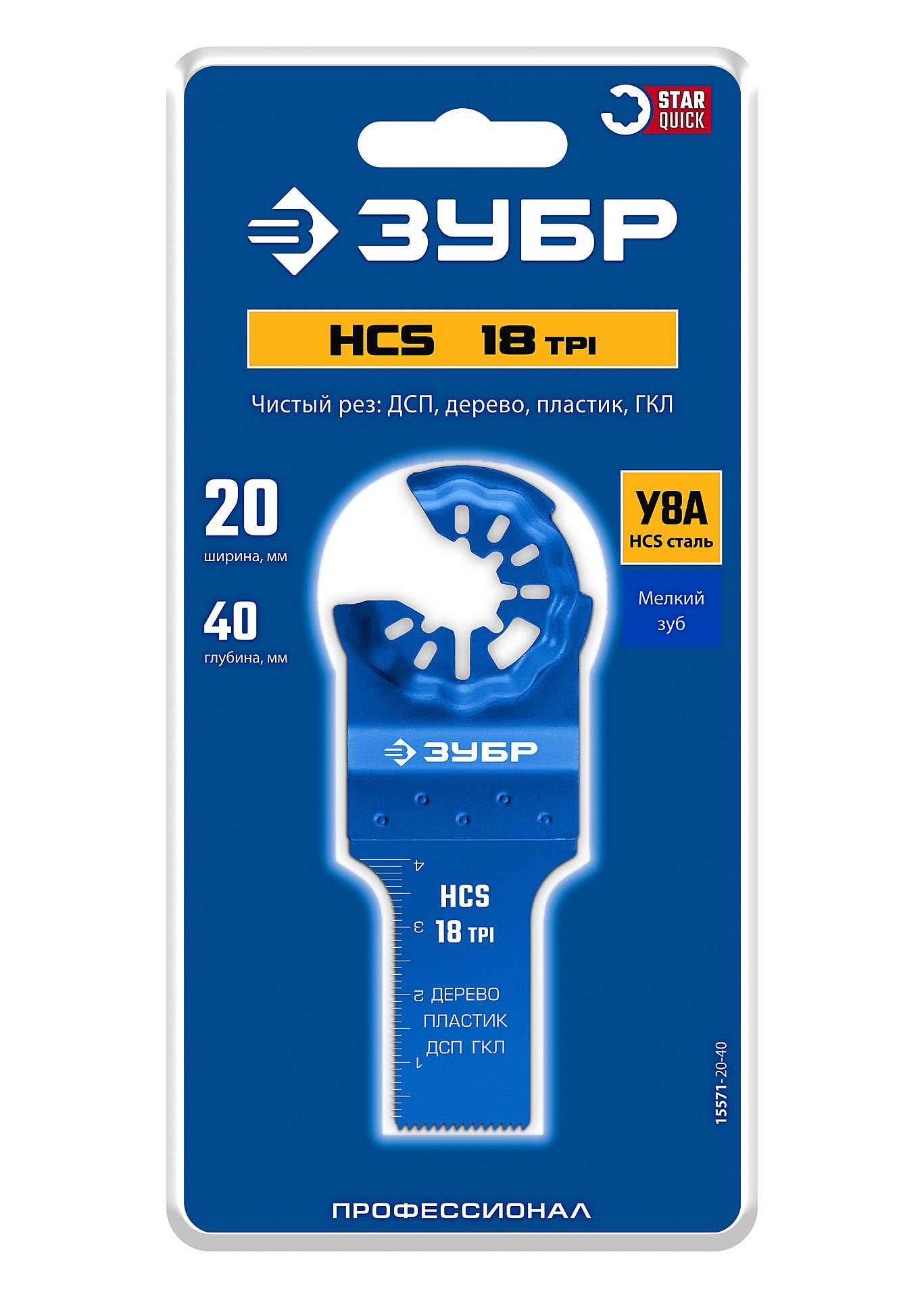 Полотно пильное 18TPI ЗУБР HCS 20x40 мм, чистый рез: дерево, пластик, ДСП, ГКЛ 15571-20-40 - применяется для пиления дерева, пластика, ГКЛ. StarQuick хвостовик совместим с большинством реноваторов.