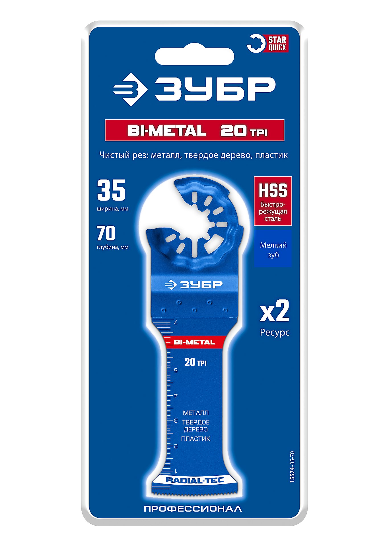Полотно биметаллическое, чистый рез: металл, твердое дерево, пластик ЗУБР BIM 35x70 мм, 20TPI 15574-35-70 - применяется для пиления металла, дерева с гвоздями, сэндвич-панелей.