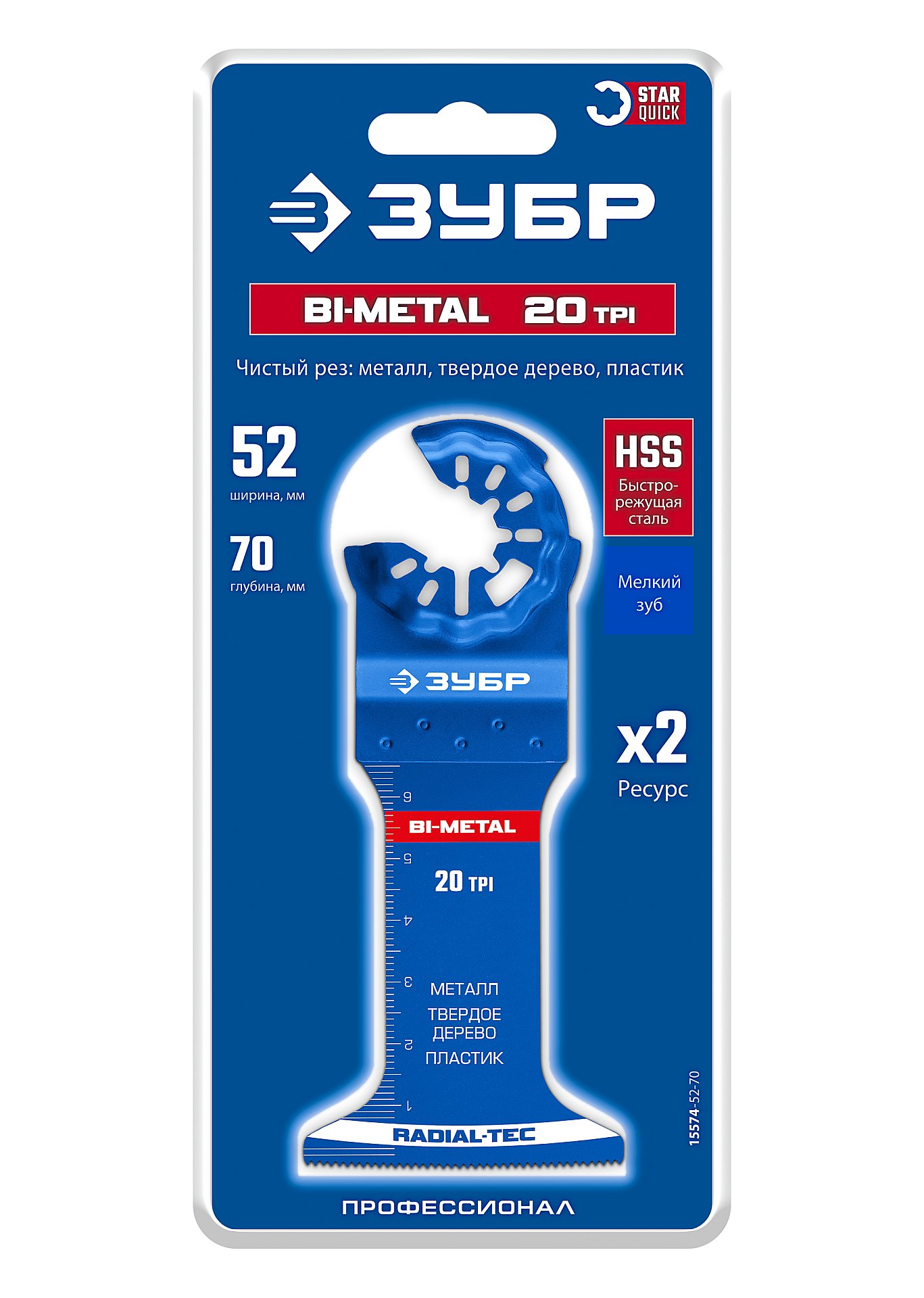 Полотно биметаллическое, чистый рез: металл, твердое дерево, пластик ЗУБР BIM 52x70 мм, 20TPI 15574-52-70 - применяется для пиления металла, дерева с гвоздями, сэндвич-панелей.