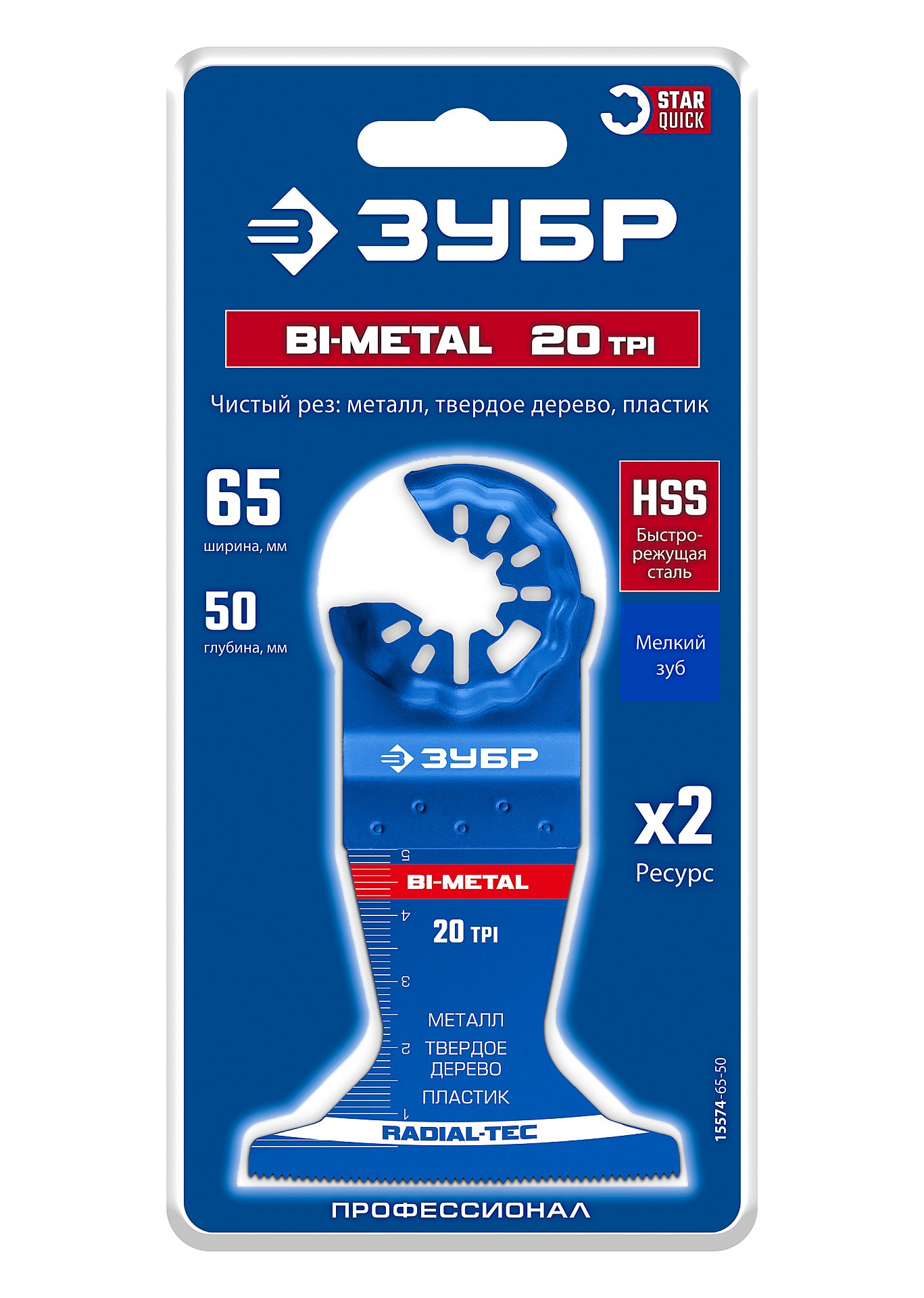 Полотно биметаллическое, чистый рез: металл, твердое дерево, пластик ЗУБР BIM 65x50 мм, 20TPI 15574-65-50 - применяется для пиления металла, дерева с гвоздями, сэндвич-панелей.