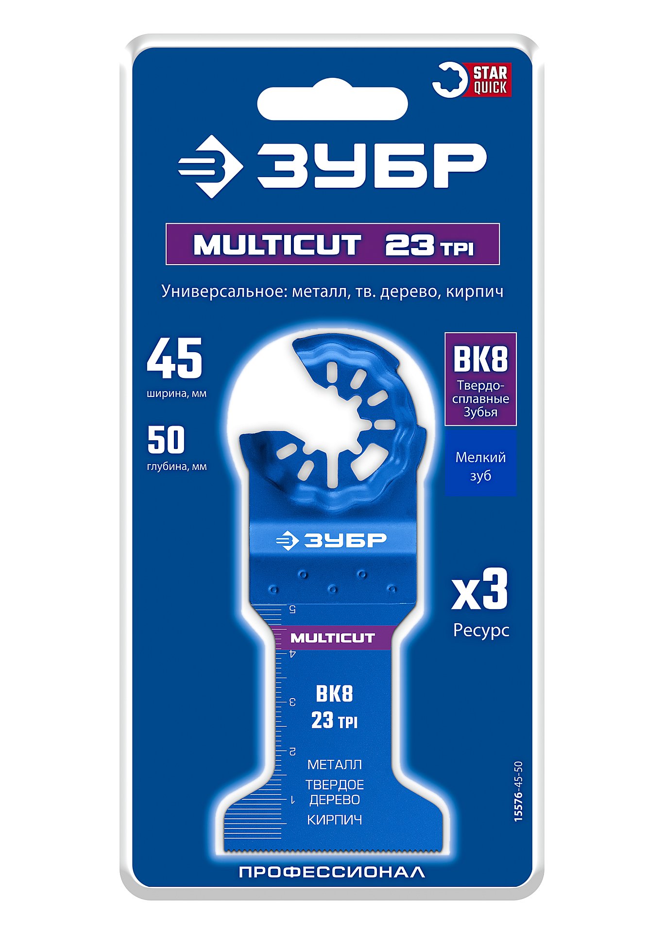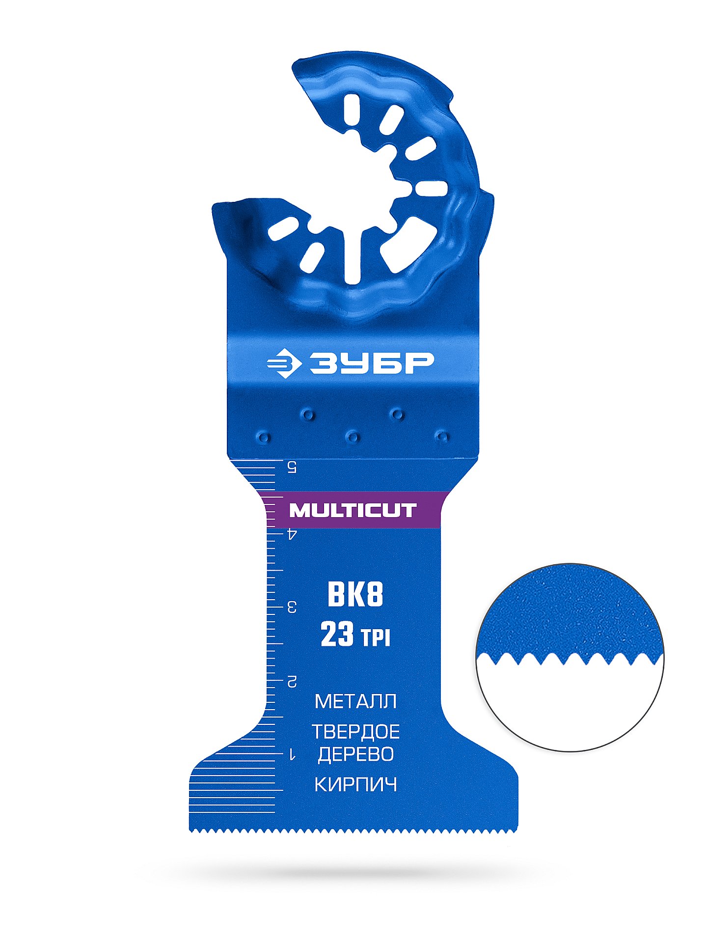 Полотно универсальное с твердосплавными зубьями: металл, твёрдое дерево, кирпич ЗУБР MULTICUT ВК8 23TPI, 45x50 мм 15576-45-50 - применяется для пиления металла, дерева, твердых материалов.