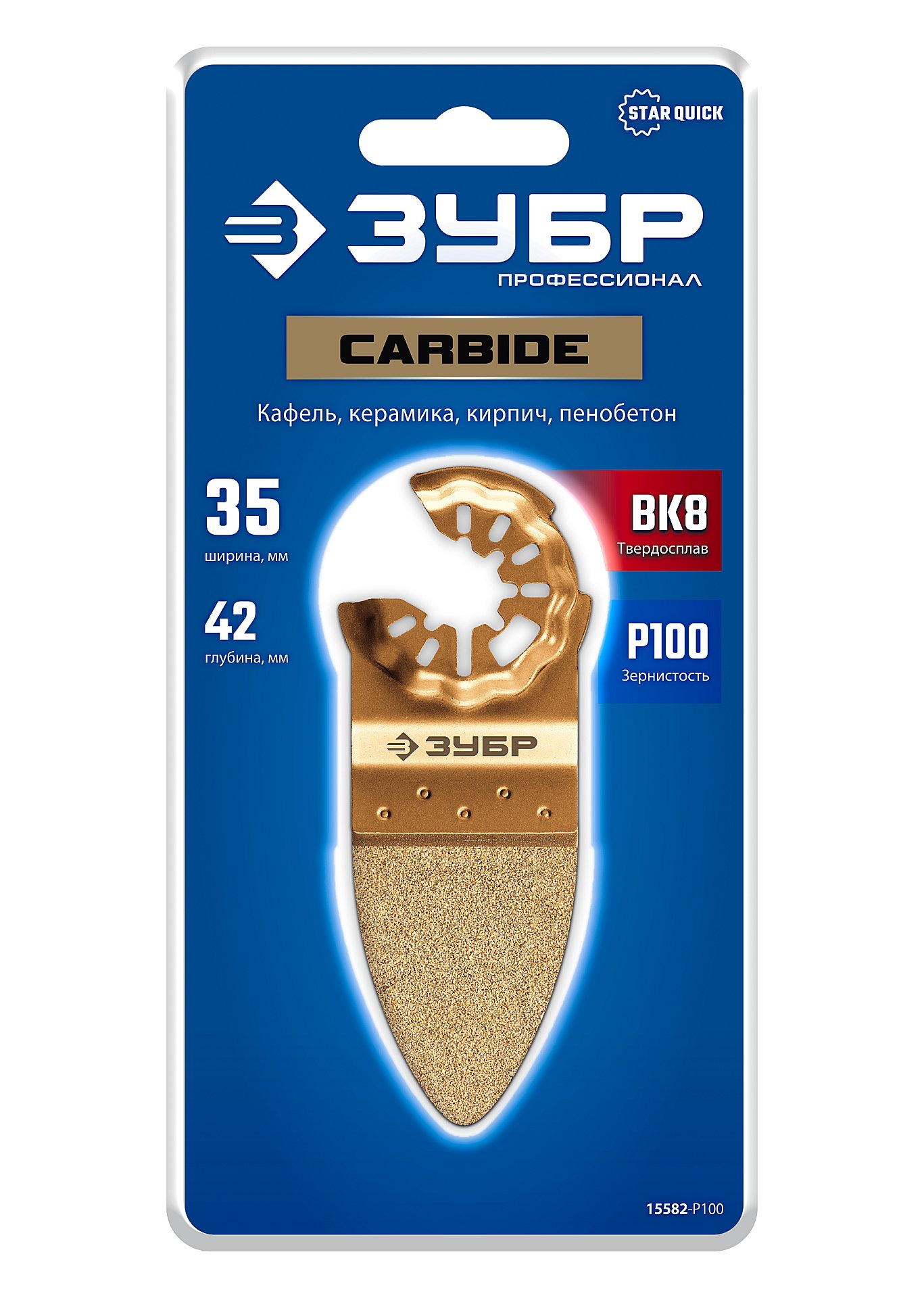 Полотно дельтовидное с твердосплавной крошкой: керамика, кирпич, пенобетон ЗУБР CARBIDE ВК8 Р100, 35x42 мм 15582-P100 - предназначено для использования совместно с реноватором. Насадка изготовлена из высококачественных материалов на автоматизированных производственных линиях с применением новейших методов вырубки.