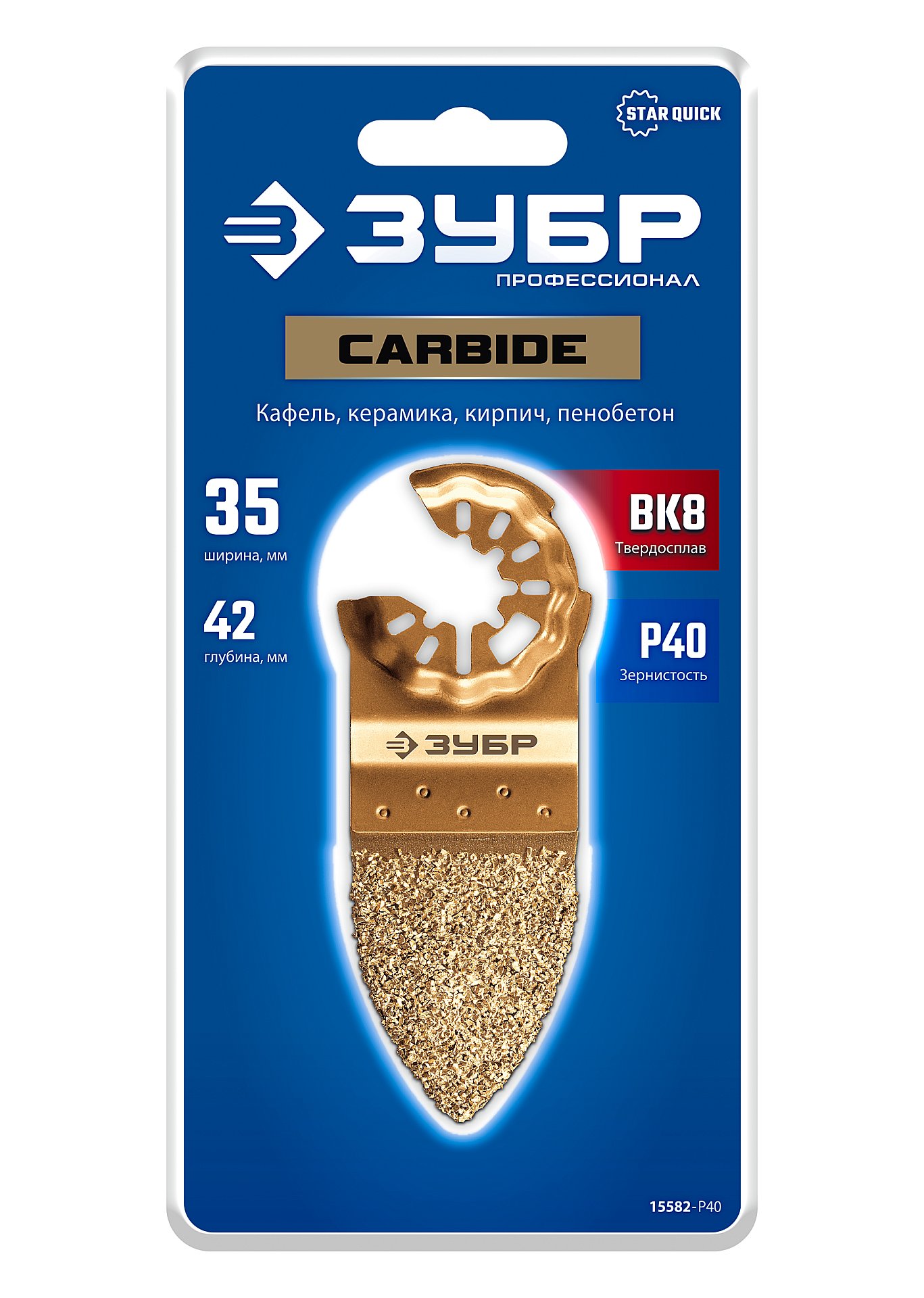 Полотно дельтовидное с твердосплавной крошкой: керамика, кирпич, пенобетон ЗУБР CARBIDE ВК8 Р40, 35x42 мм 15582-P40 - предназначено для использования совместно с реноватором. Насадка изготовлена из высококачественных материалов на автоматизированных производственных линиях с применением новейших методов вырубки.