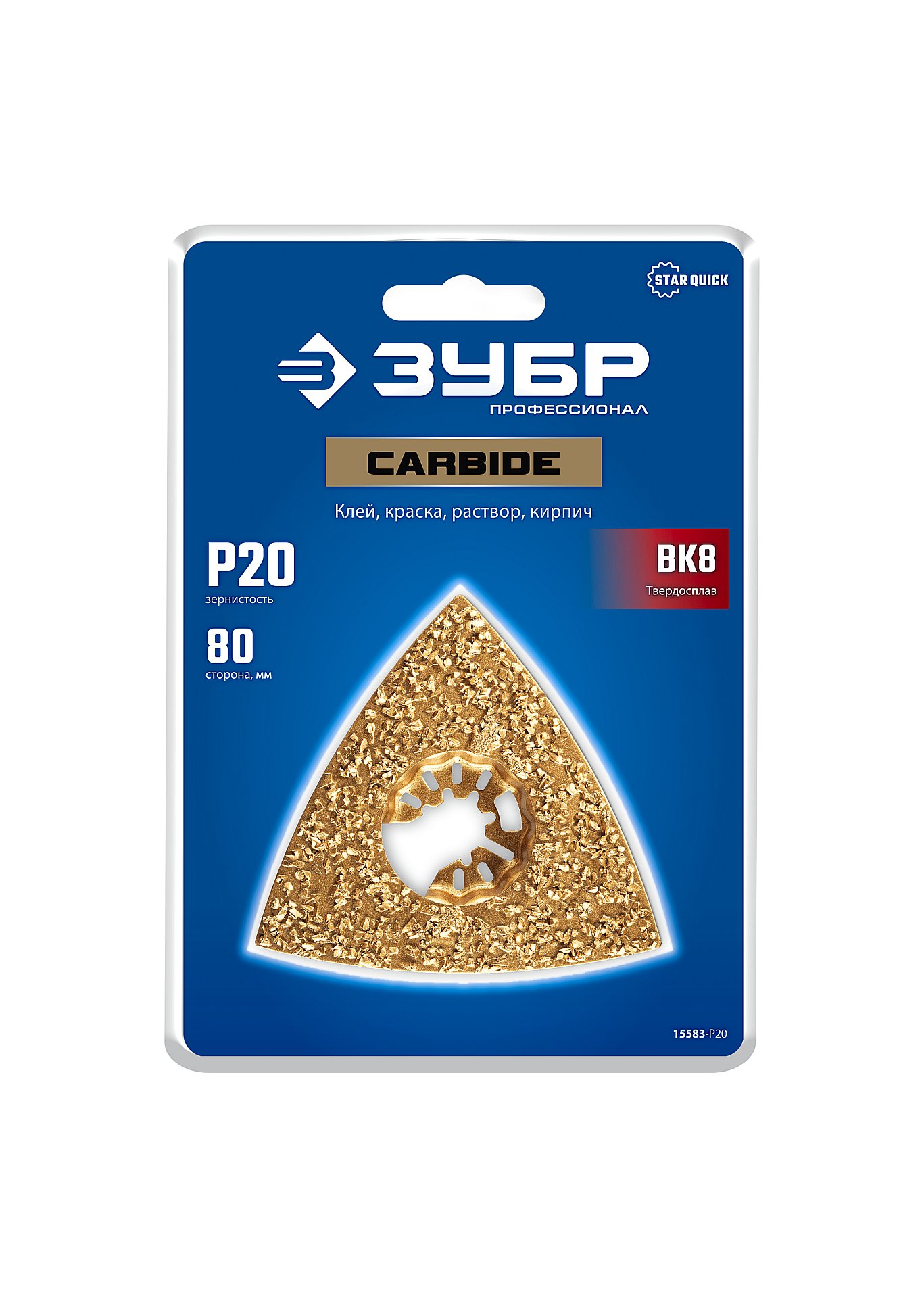 Полотно треугольное зачистное с твердосплавной крошкой: клей, краска, раствор, кирпич, пенобетон ЗУБР CARBIDE ВК8 Р20, 80 мм 15583-P20 - используются