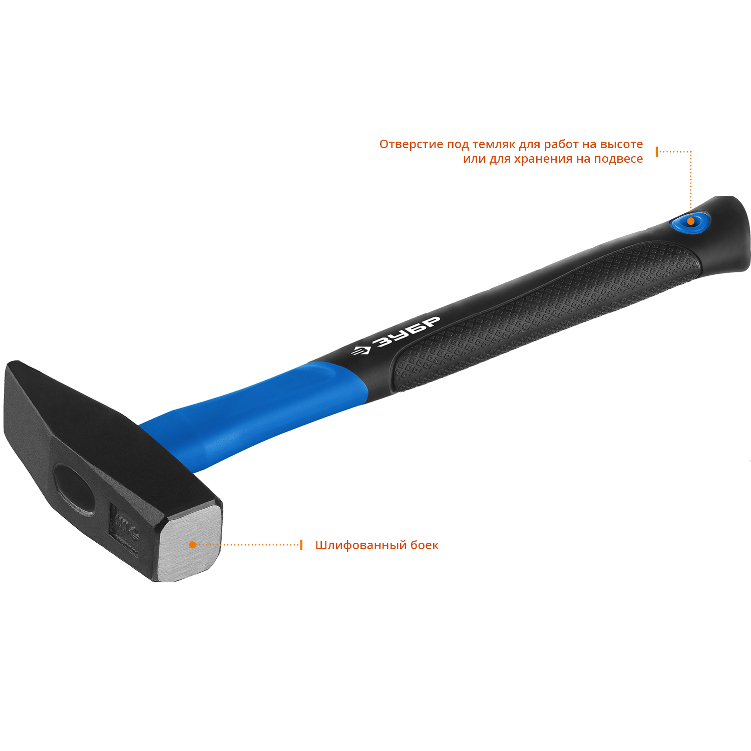 Молоток слесарный с фиберглассовой рукояткой 1000 г, ЗУБР 20020-10_z01 — надежный ударный инструмент для слесарно-монтажных работ. Голова из кованой инструментальной стали. Удобная фиберглассовая рукоятка с противоскользящим покрытием. Инструмент соответствует ГОСТ 2310-77 по качеству