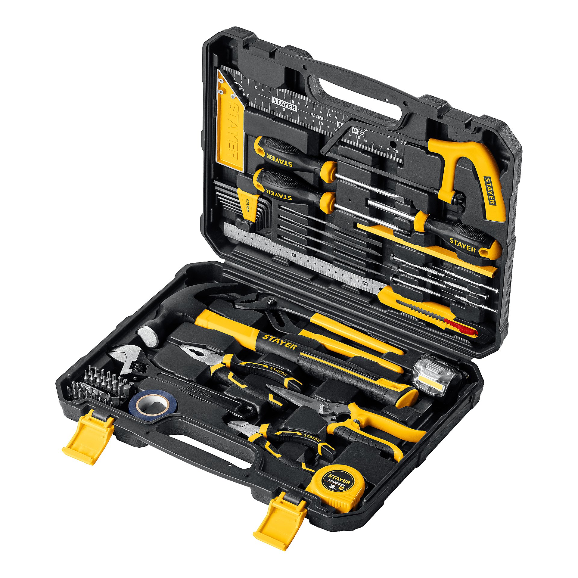 Универсальный набор инструмента для дома STAYER Master-67 67 предм. 22055-H67 - предназначен для выполнения широкого вида ремонтных работ. Удобное хранение и транспортировка в пластиковом кейсе. Высокопрочная CrV сталь. Высокоточный наконечник бит. Удобные рукоятки.