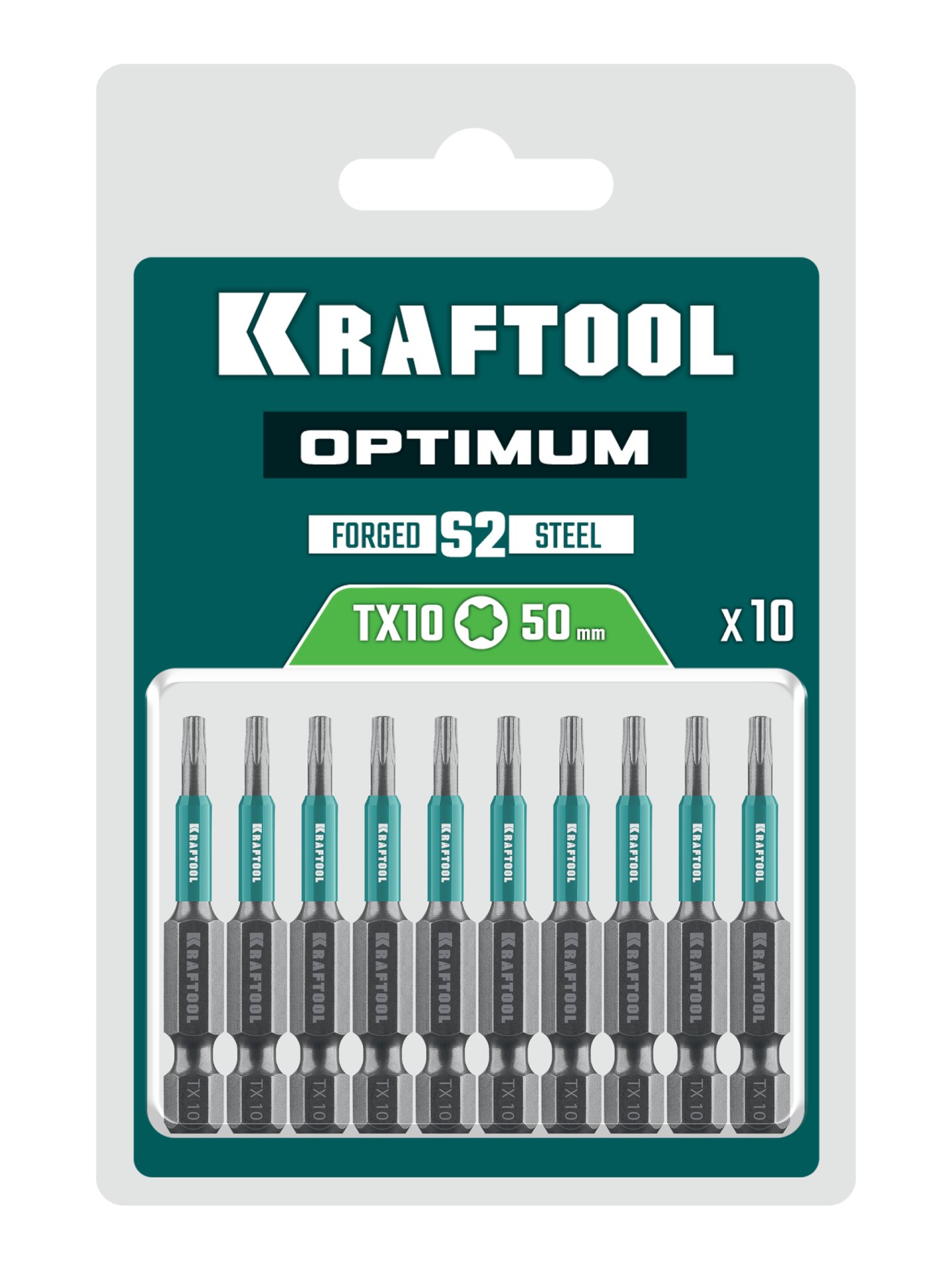 Биты TX 10, 50 мм, KRAFTOOL OPTIMUM 10 шт 26126-10-50-10 — профессиональные биты KRAFTOOL «OPTIMUM» для монтажа и демонтажа резьбовых соединений с использованием ручного и механизированного инструмента.
