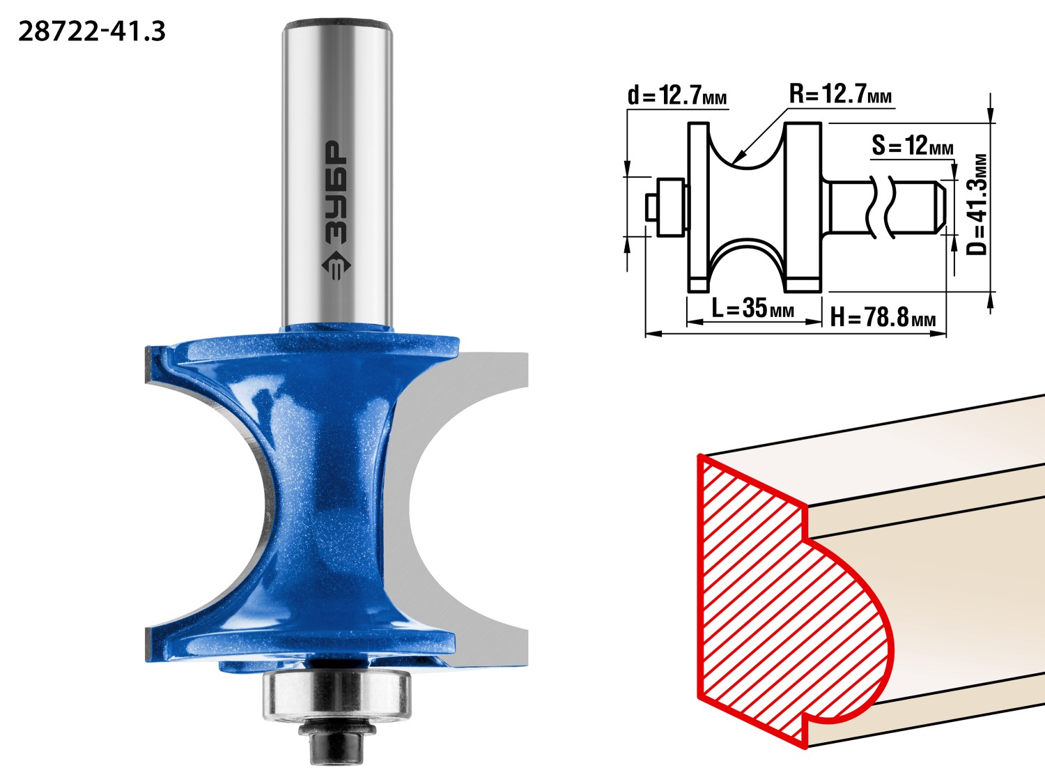 Фреза полустержневая с подшипником ЗУБР 28722-41.3, предназначена для обработки кромок, торцев, получения декоративного профиля при работе с различными видами древесины. Высококачественный твердый сплав для повышенного ресурса и чистоты обработки. Заточка производится только на самых современных станках с ЧПУ. Упорный подшипник позволяет обрабатывать криволинейные кромки без дополнительных приспособлений.