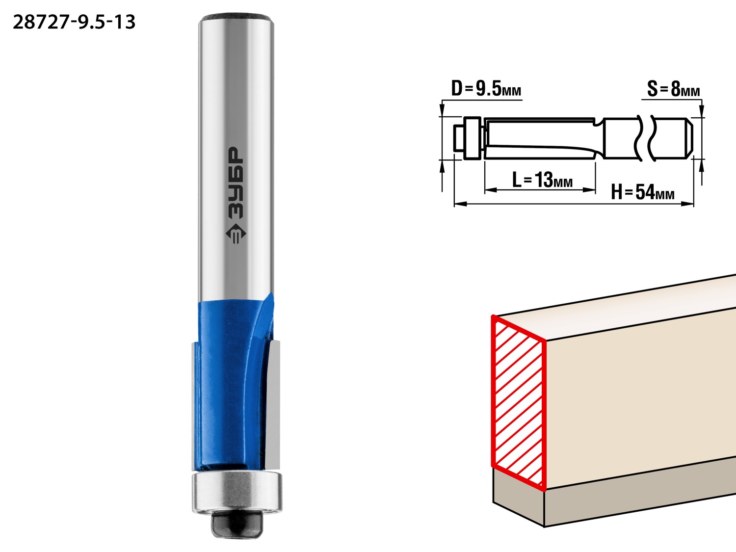Фреза кромочная с нижним подшипником ЗУБР 28727-9.5-13, предназначена для получения прямого торца или кромки при обработке деталей и заготовок при работе с различными видами древесины. Высококачественный твердый сплав для повышенного ресурса и чистоты обработки. Заточка производится только на самых современных станках с ЧПУ. Упорный подшипник позволяет обрабатывать криволинейные кромки без дополнительных приспособлений.