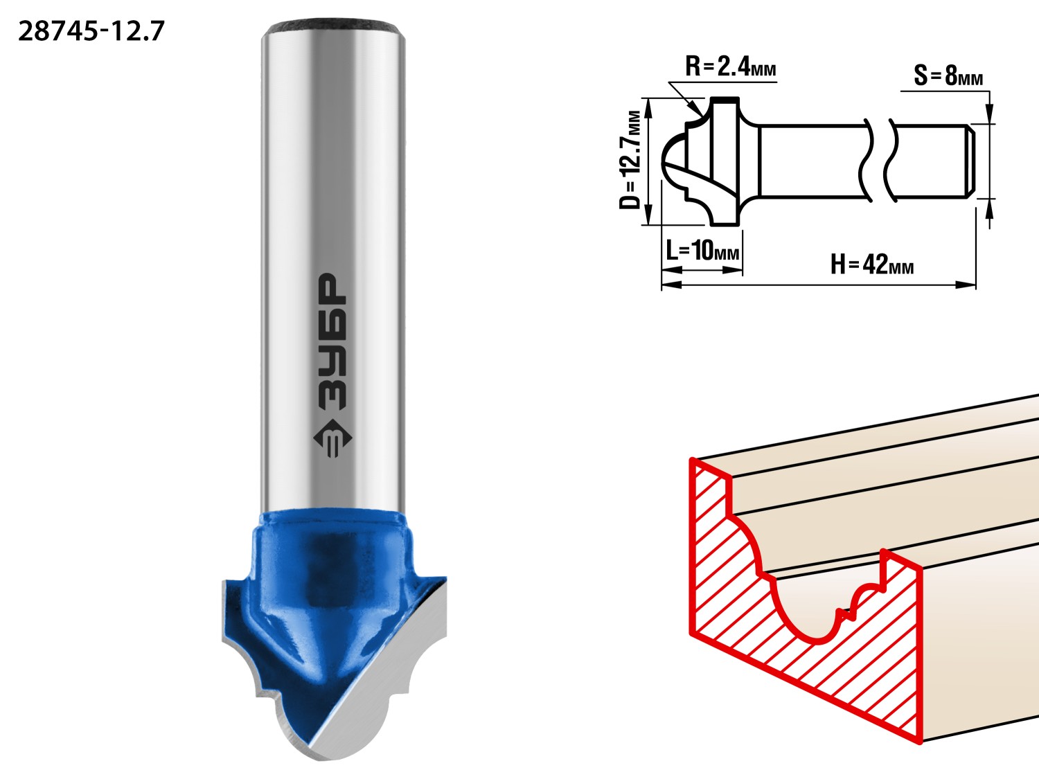 Фреза пазовая фасонная №6 ЗУБР 28745-12.7, предназначена для профилирования кромок, изготовления декоративных пазов и рисунков, фрезерования канавок при работе с различными видами древесины. Высококачественный твердый сплав для повышенного ресурса и чистоты обработки. Заточка производится только на самых современных станках с ЧПУ.