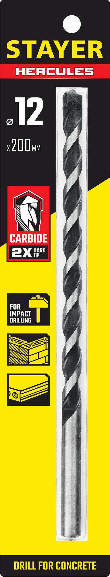 Сверло по бетону, STAYER Hercules, 12 x 200 мм, Professional 2915-200-12_z01 - предназначено для работ по бетону, граниту, природному и искусственному камню, кирпичной кладке.