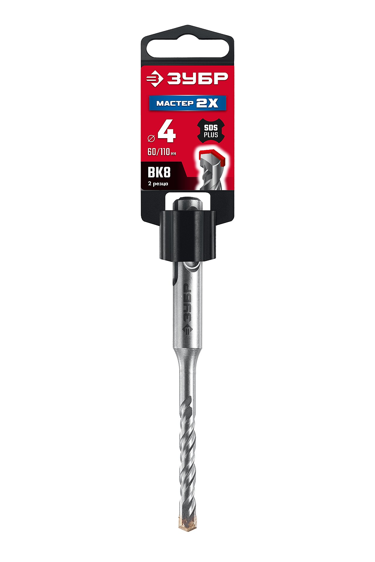 Бур SDS-plus ЗУБР Мастер-2Х 4x110 мм 29315-110-04_z01 - предназначен для сверления отверстий в бетоне, граните, кирпичной кладке, камне и твердом известняке. Используются на легких и средних перфораторах с зажимом SDS-plus.