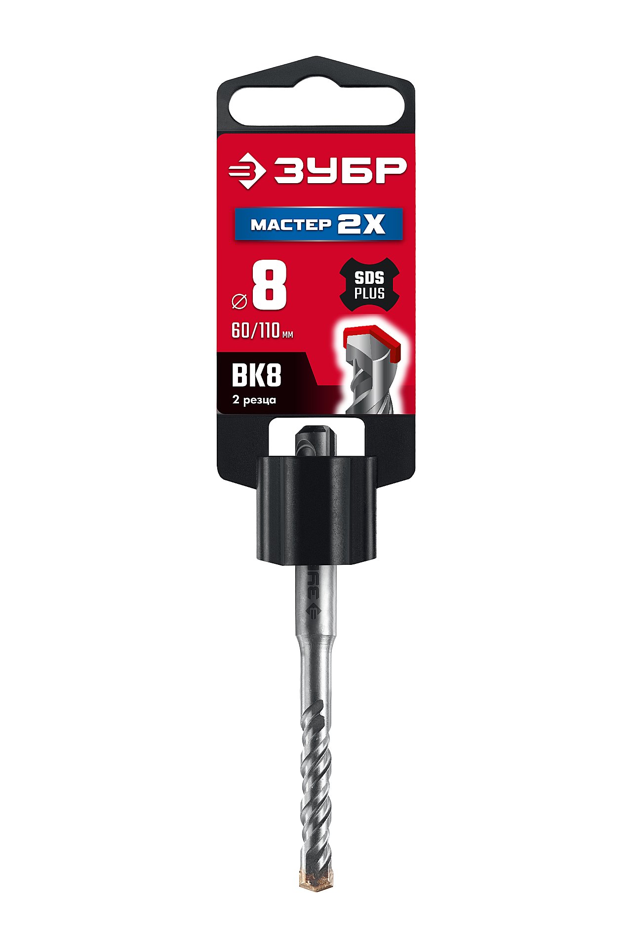Бур SDS-plus ЗУБР Мастер-2Х 8×110 мм, 29315-110-08_z01 — предназначен для ударного сверления отверстий в бетоне, граните, кирпичной кладке, камне и твердых известняках. Используется на легких и средних перфораторах с зажимом SDS-plus.