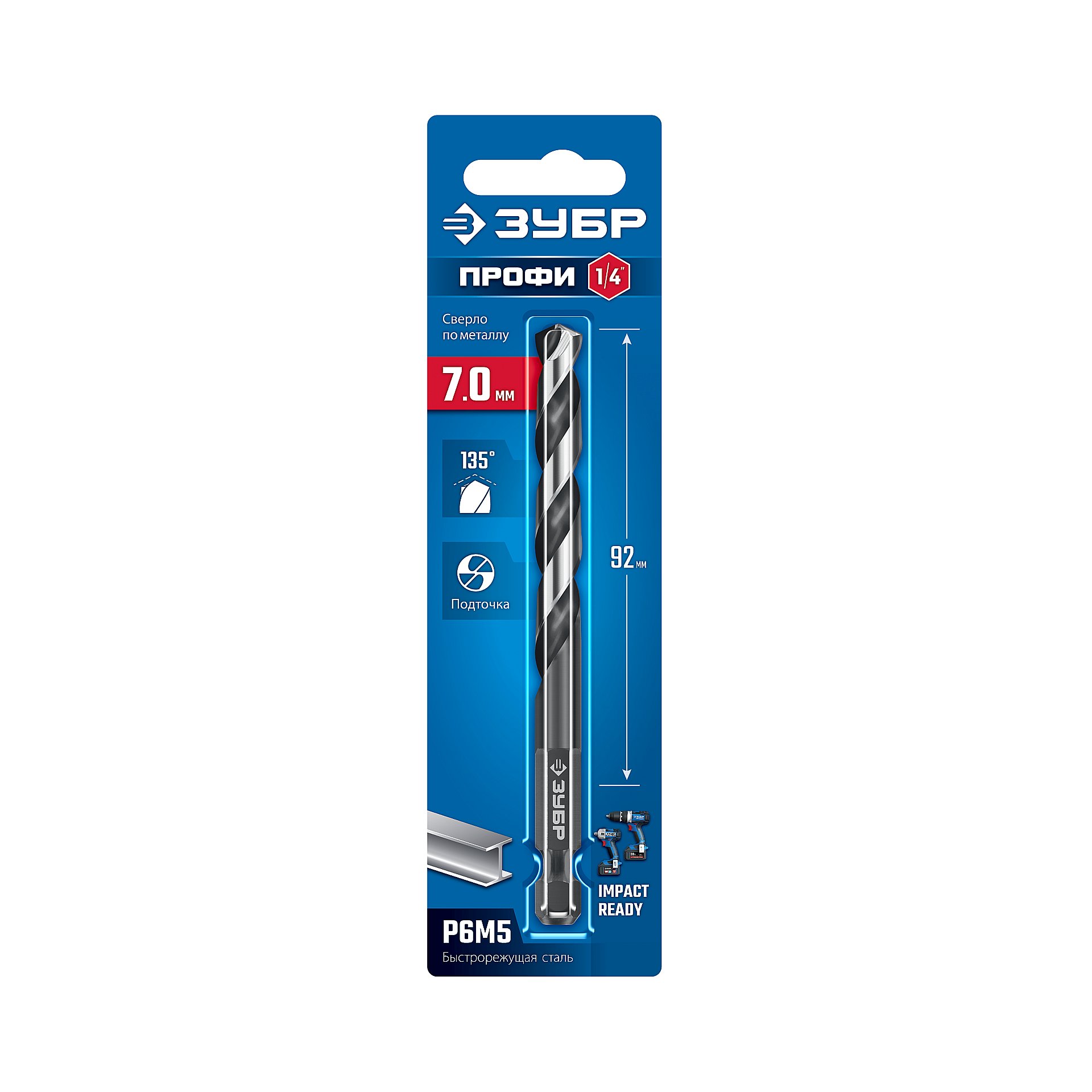 Сверло по металлу для винтовёртов и шуруповертов IMPACT READY ЗУБР НЕХ-1/4″, d 7.0 х 109 мм, 29623-7_z01 - предназначено для обработки легированных и углеродистых сталей с пределом прочности до 900Н/мм^2, цветных металлов, серого чугуна и пластмассы.