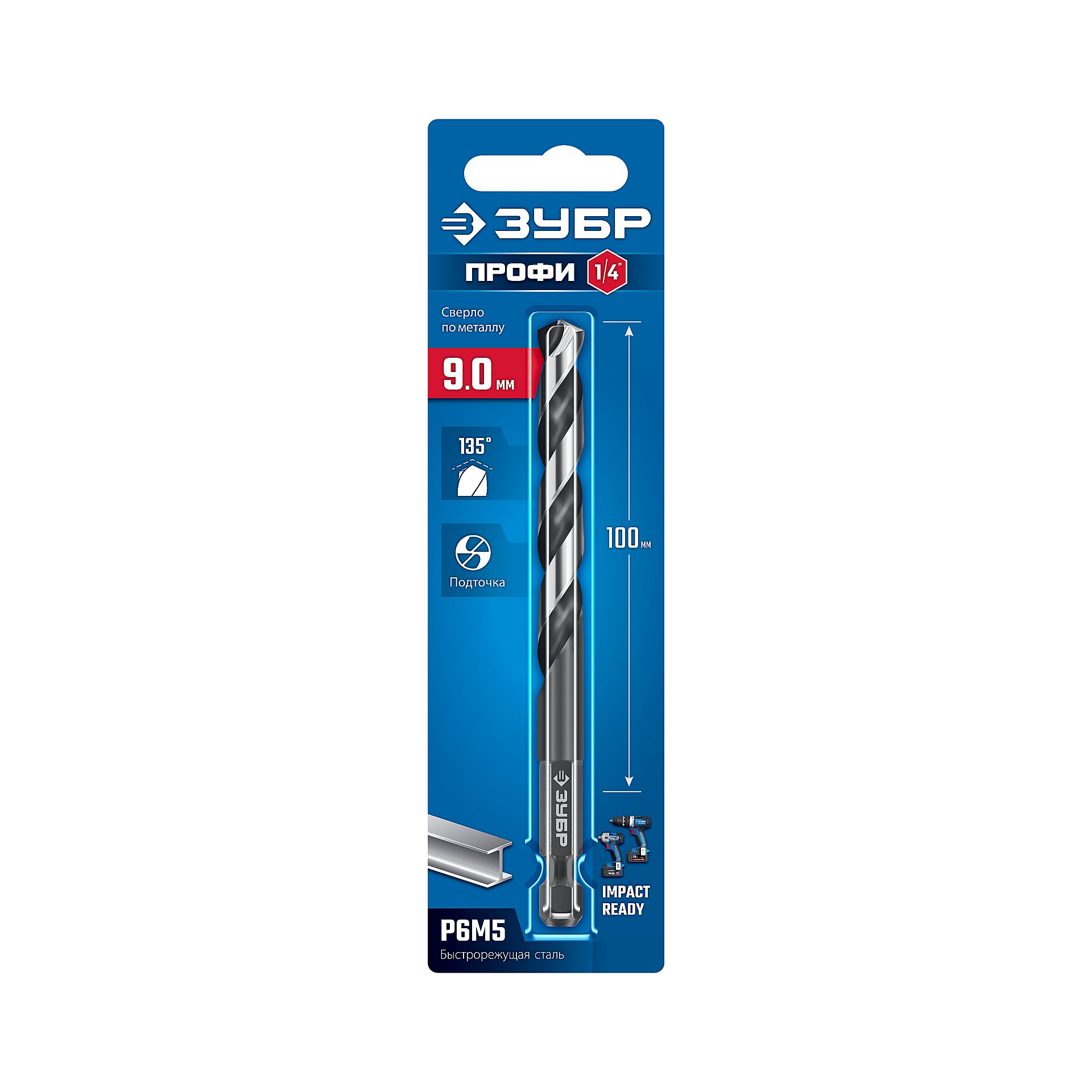 Сверло по металлу для винтовёртов и шуруповертов IMPACT READY ЗУБР НЕХ-1/4″, d 9.0 х 125 мм, 29623-9_z01 - предназначено для обработки легированных и углеродистых сталей с пределом прочности до 900Н/мм^2, цветных металлов, серого чугуна и пластмассы.