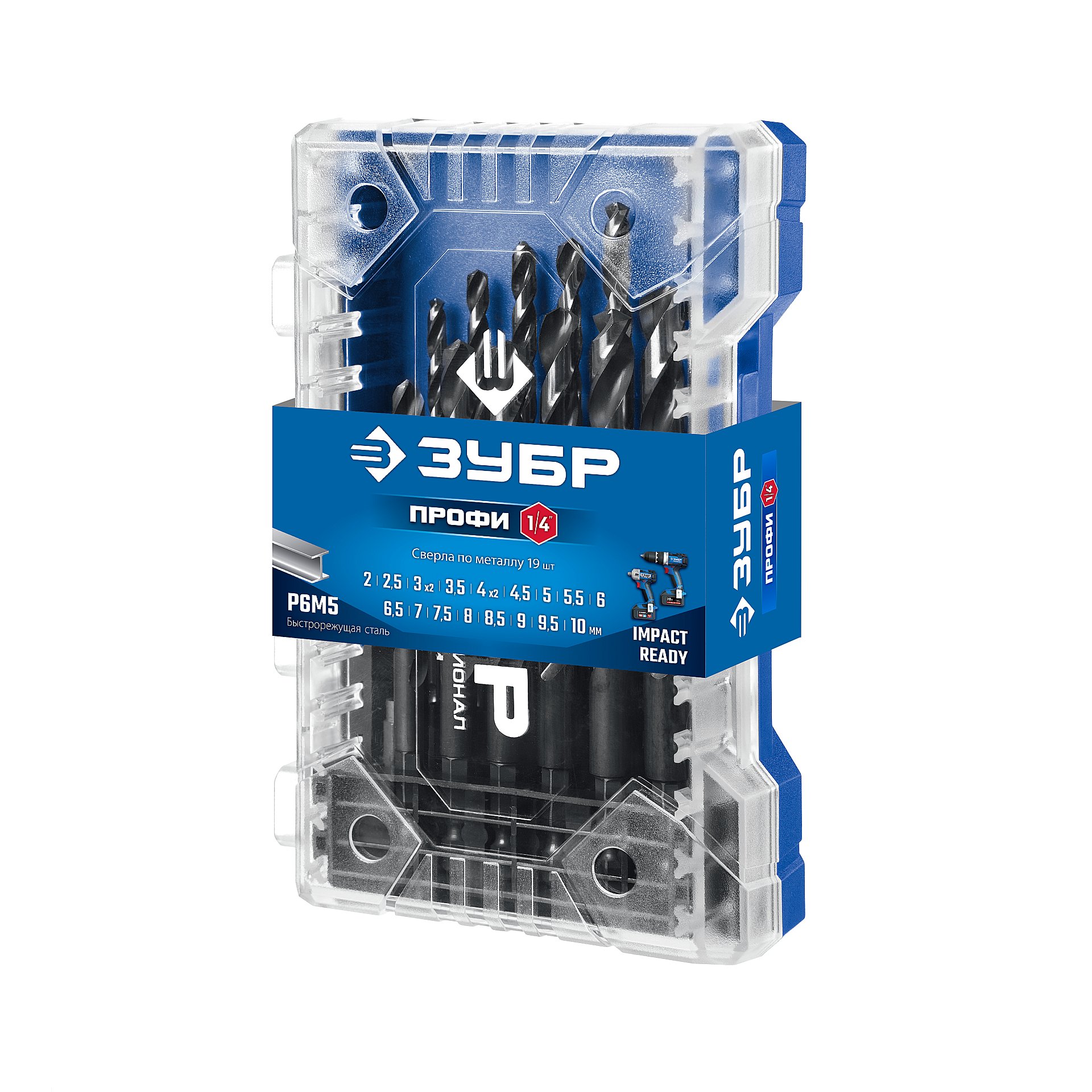 Набор сверл по металлу для винтовёртов и шуруповертов НЕХ-1/4″, 19 шт, ЗУБР, IMPACT READY 29623-H19_z02 - предназначен для обработки легированных и углеродистых сталей с пределом прочности до 900Н/мм^2, цветных металлов, серого чугуна и пластмассы.