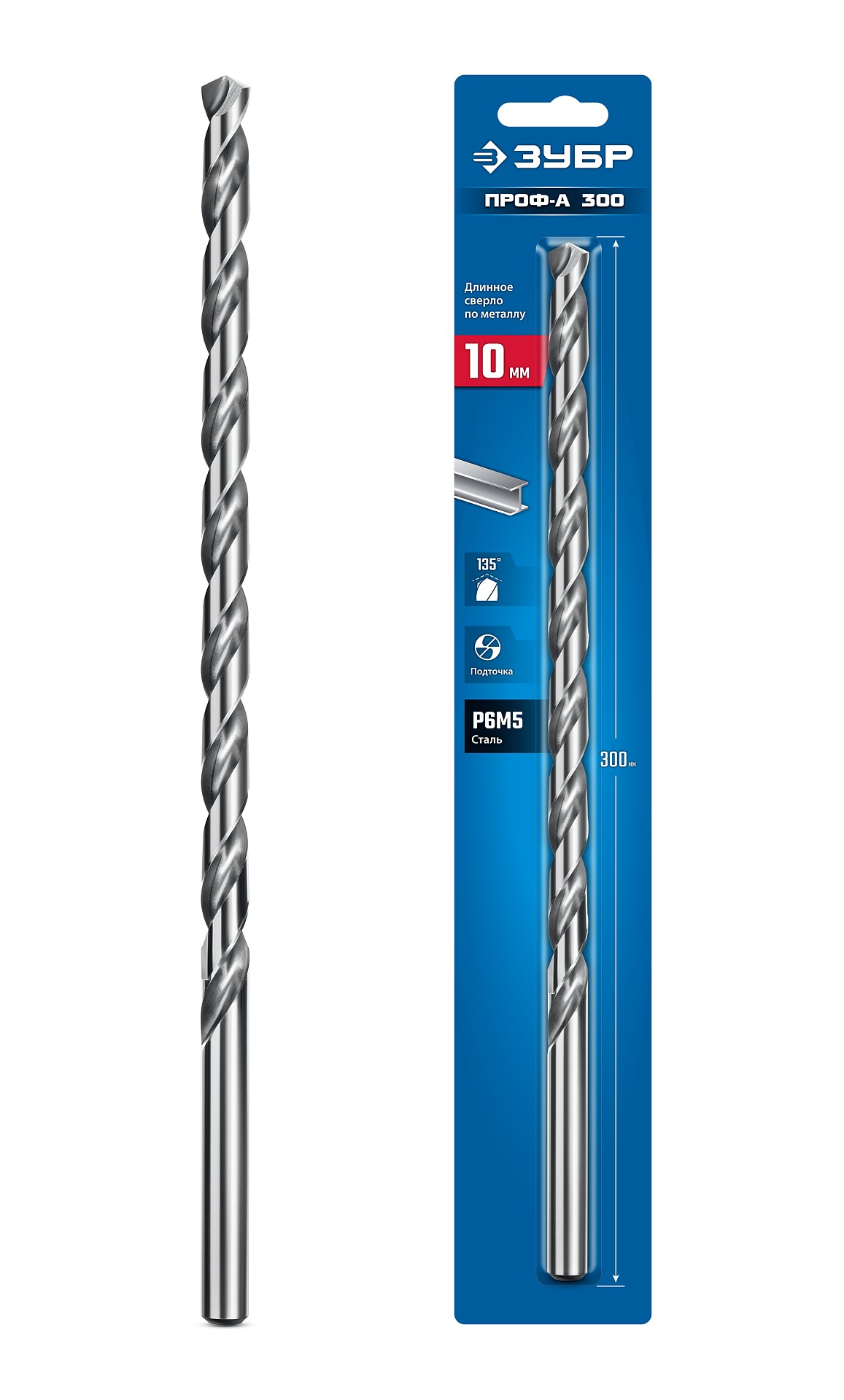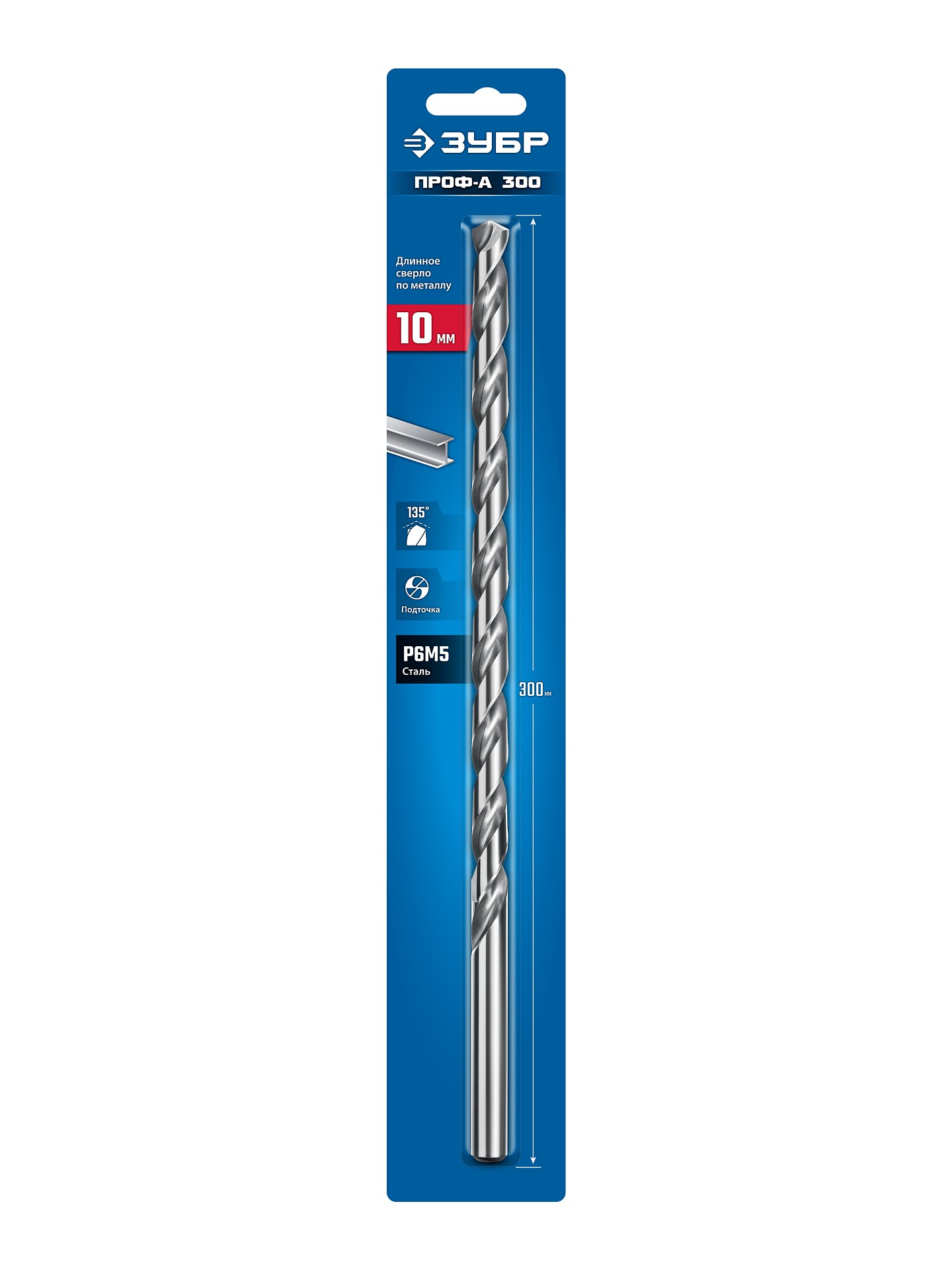 29624-10-300 ЗУБР ПРОФ-А 300 (10х300 мм, Р6М5) длинное сверло по металлу, класс А (29624-10-300)