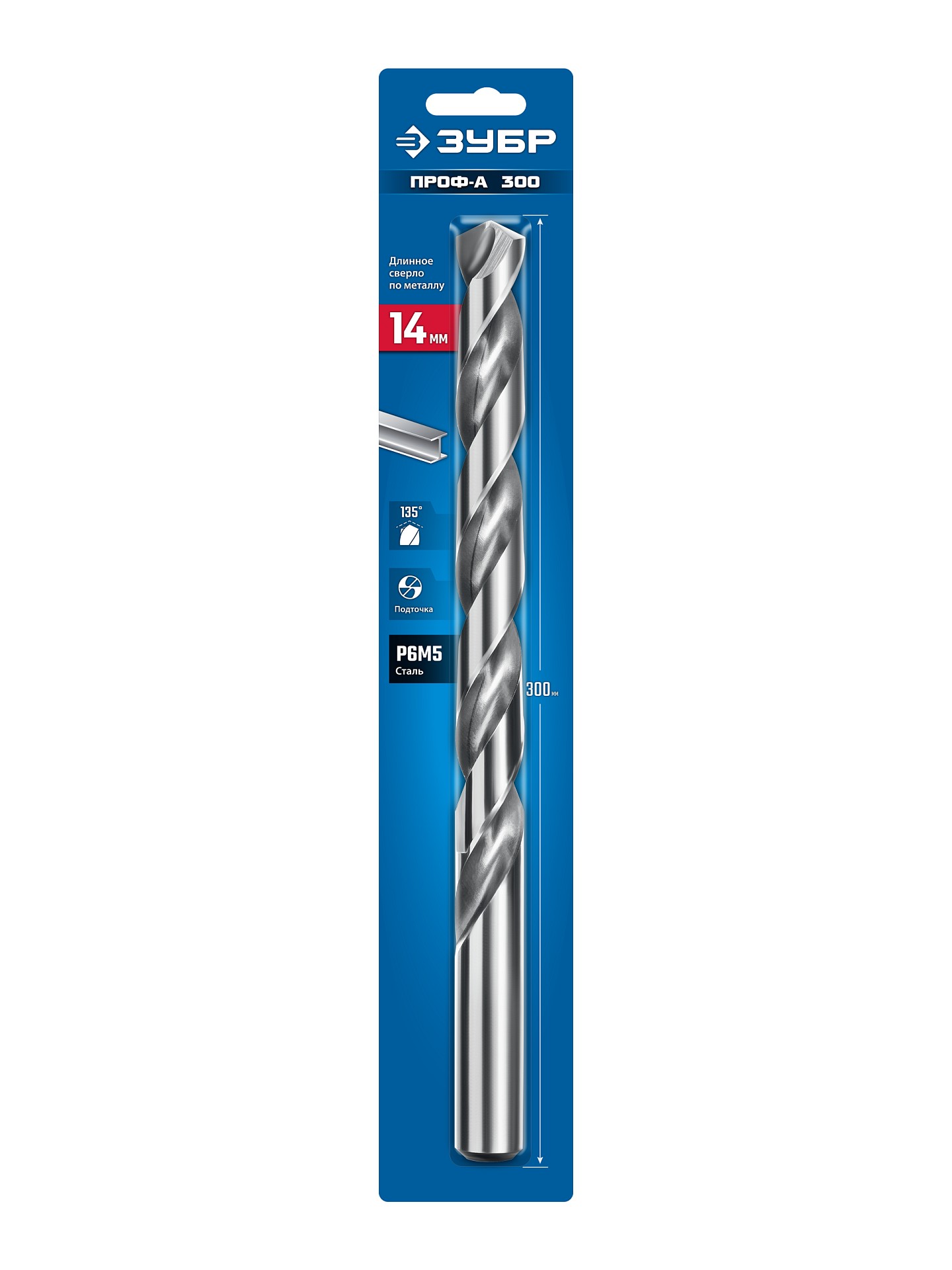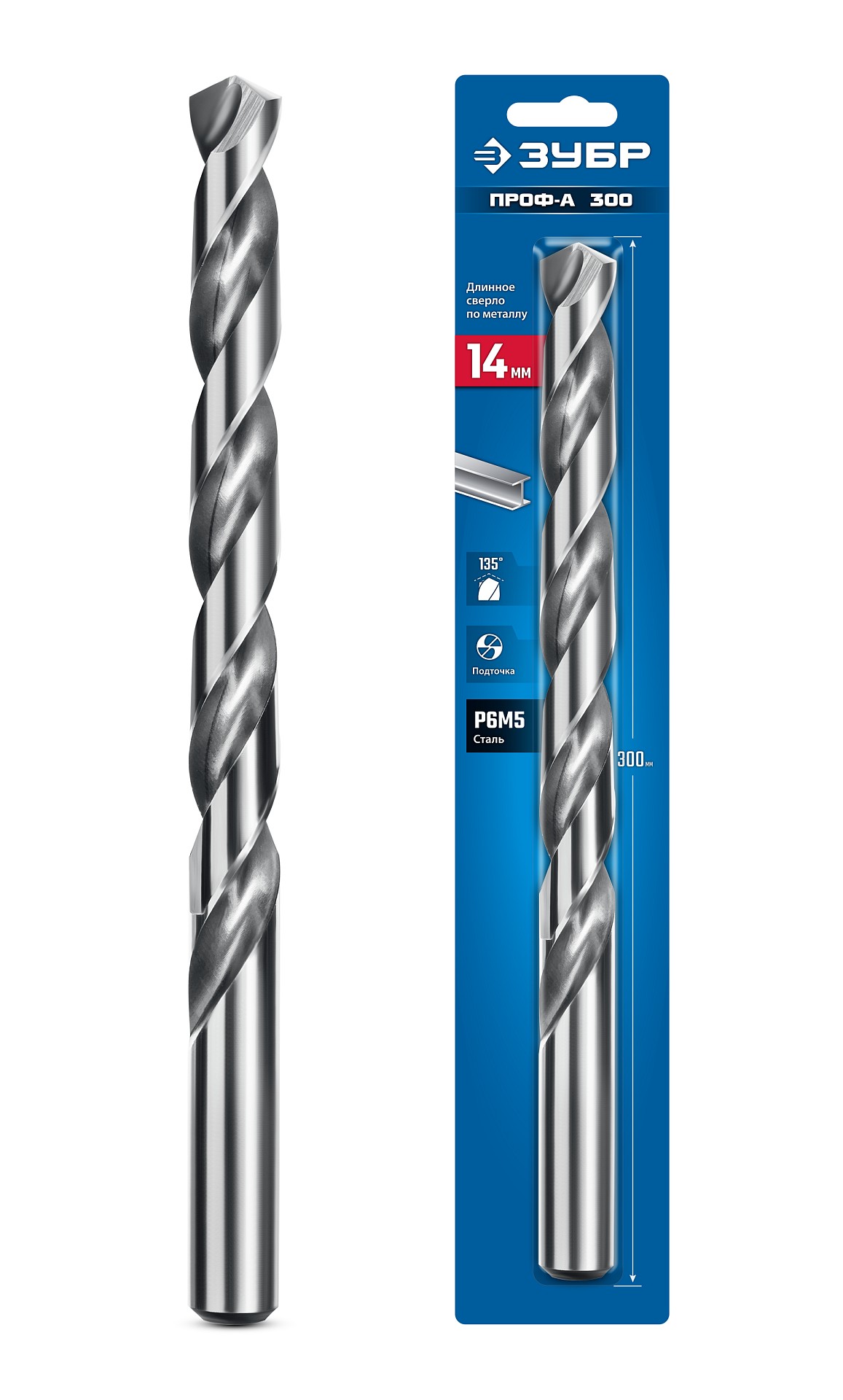29624-14-300 ЗУБР ПРОФ-А 300 (14х300 мм, Р6М5) длинное сверло по металлу, класс А (29624-14-300)
