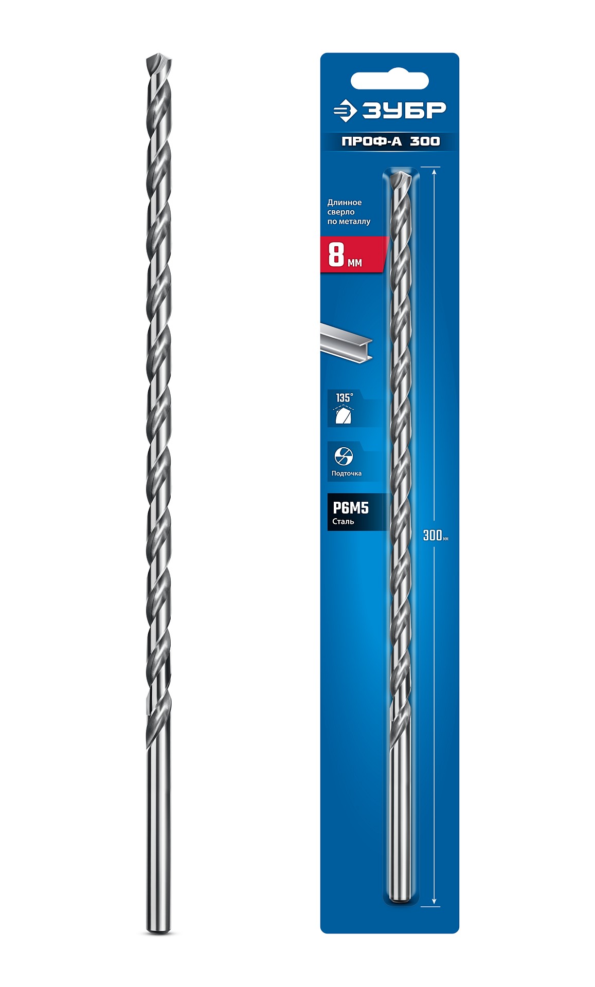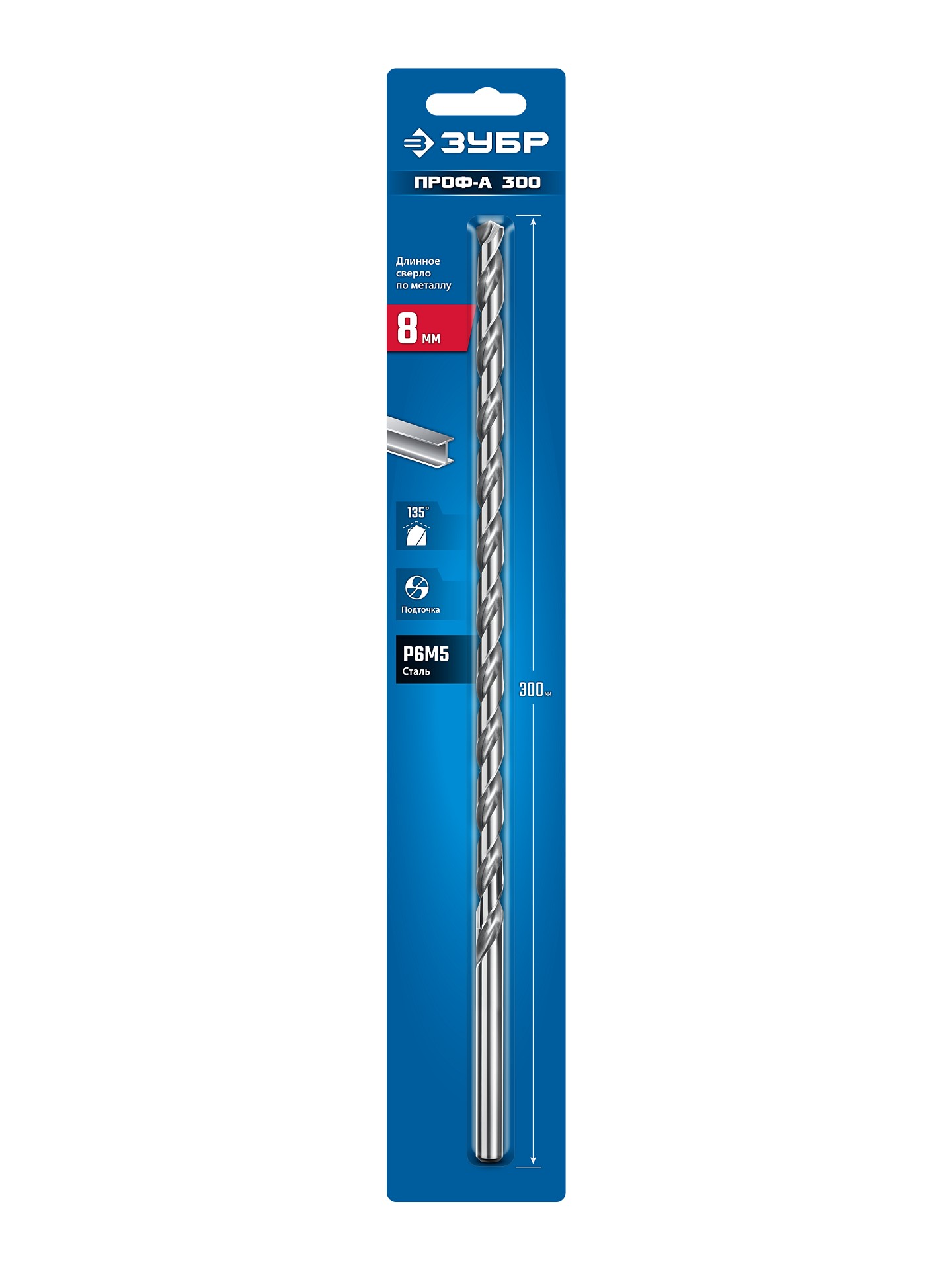 29624-8-300 ЗУБР ПРОФ-А 300 (8х300 мм, Р6М5) длинное сверло по металлу, класс А (29624-8-300)