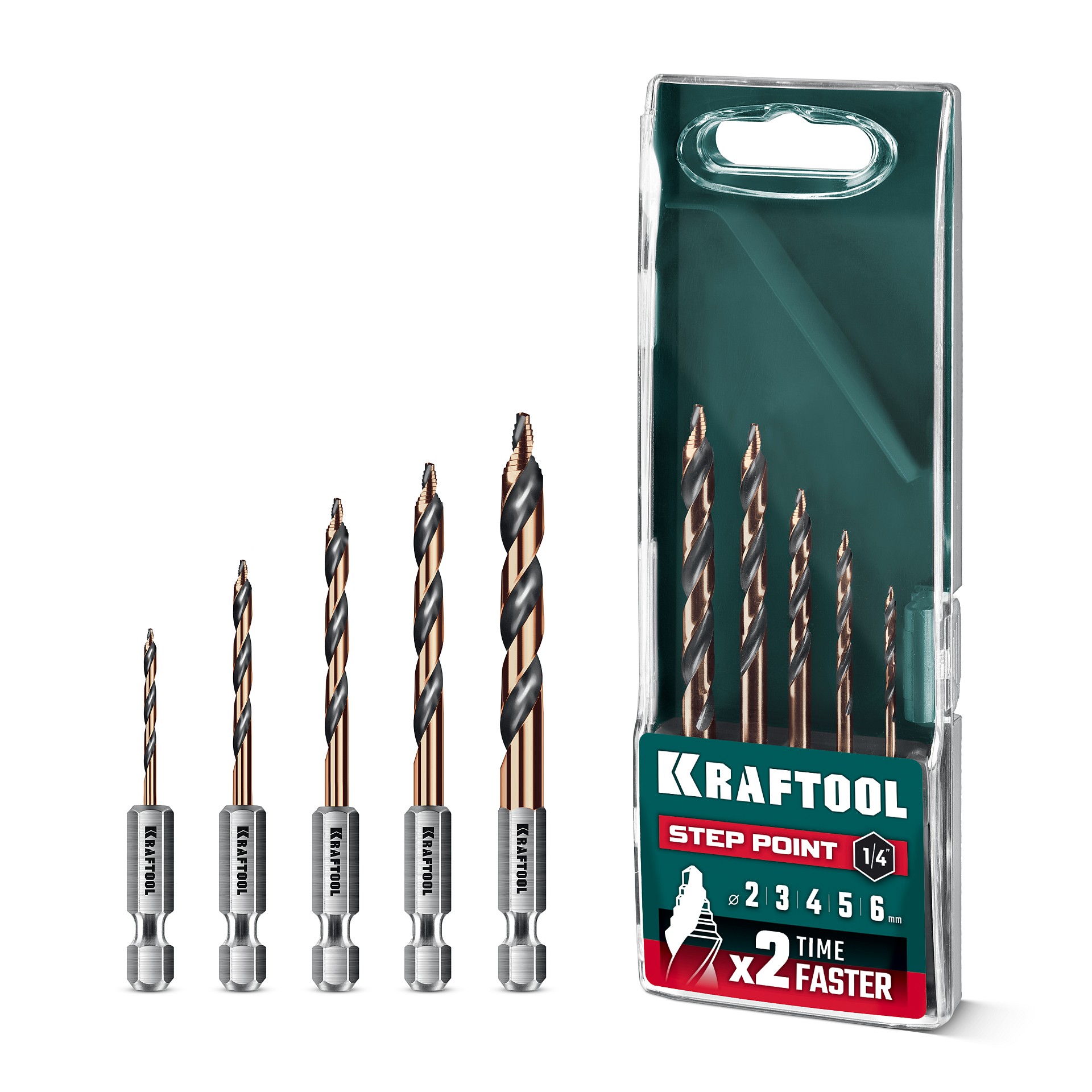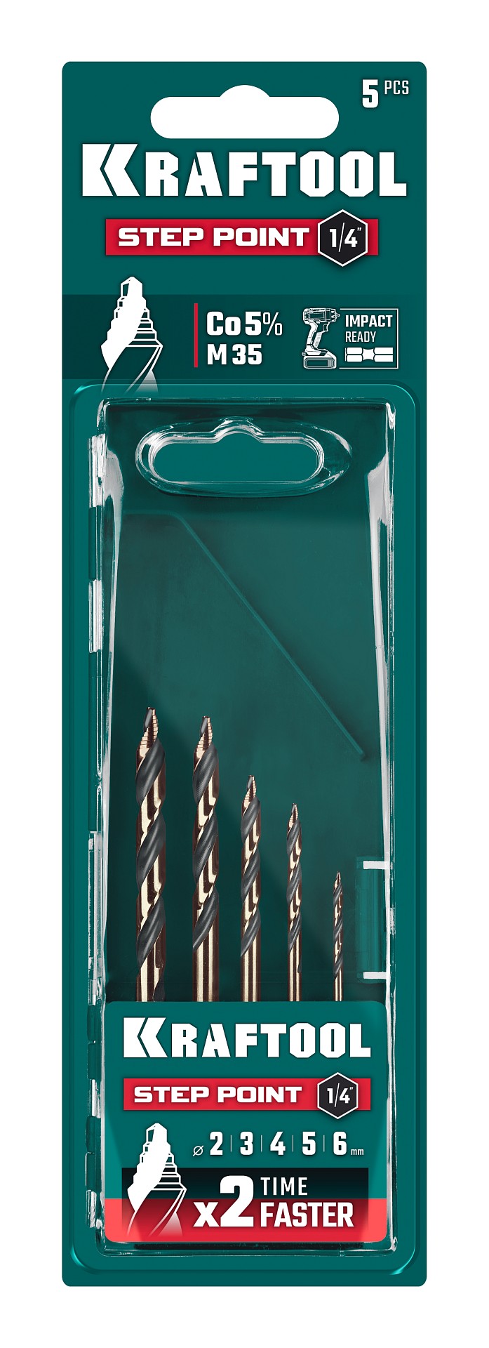 Набор сверл по металлу для винтовёртов и шуруповертов IMPACT READY KRAFTOOL STEP POINT, 5 шт, 29653-H5 — предназначен для обработки легированных и углеродистых сталей с пределом прочности до 1000 Н/мм², цветных металлов, серого чугуна и пластмассы.