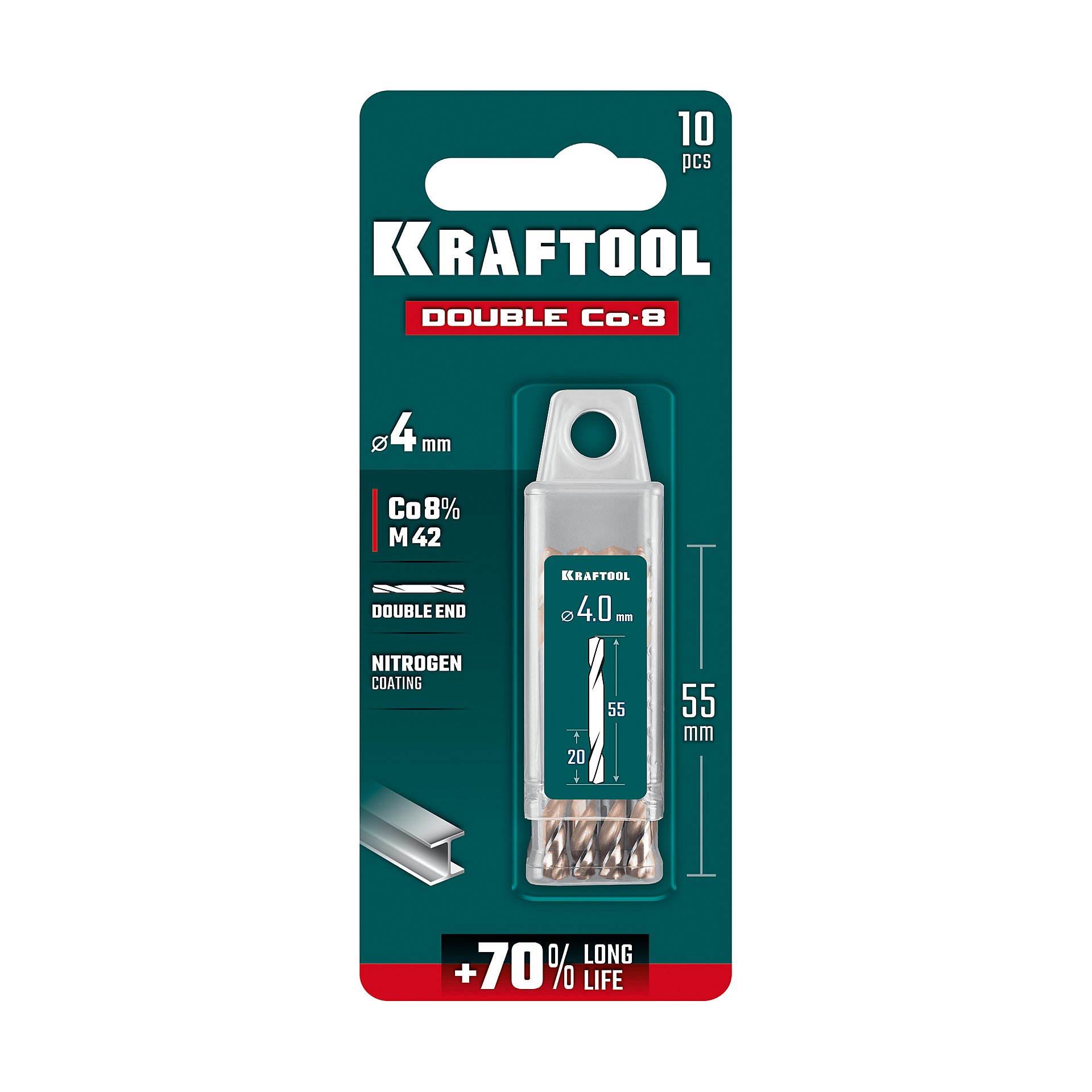 Сверло двухстороннее по металлу, Сo-8 4х55мм, сталь M42(+8%Co), класс А, KRAFTOOL DOUBLE 29654-4.0-10 - предназначено для обработки легированных и углеродистых сталей с пределом прочности до 900Н/мм², цветных металлов, серого чугуна и пластмассы.