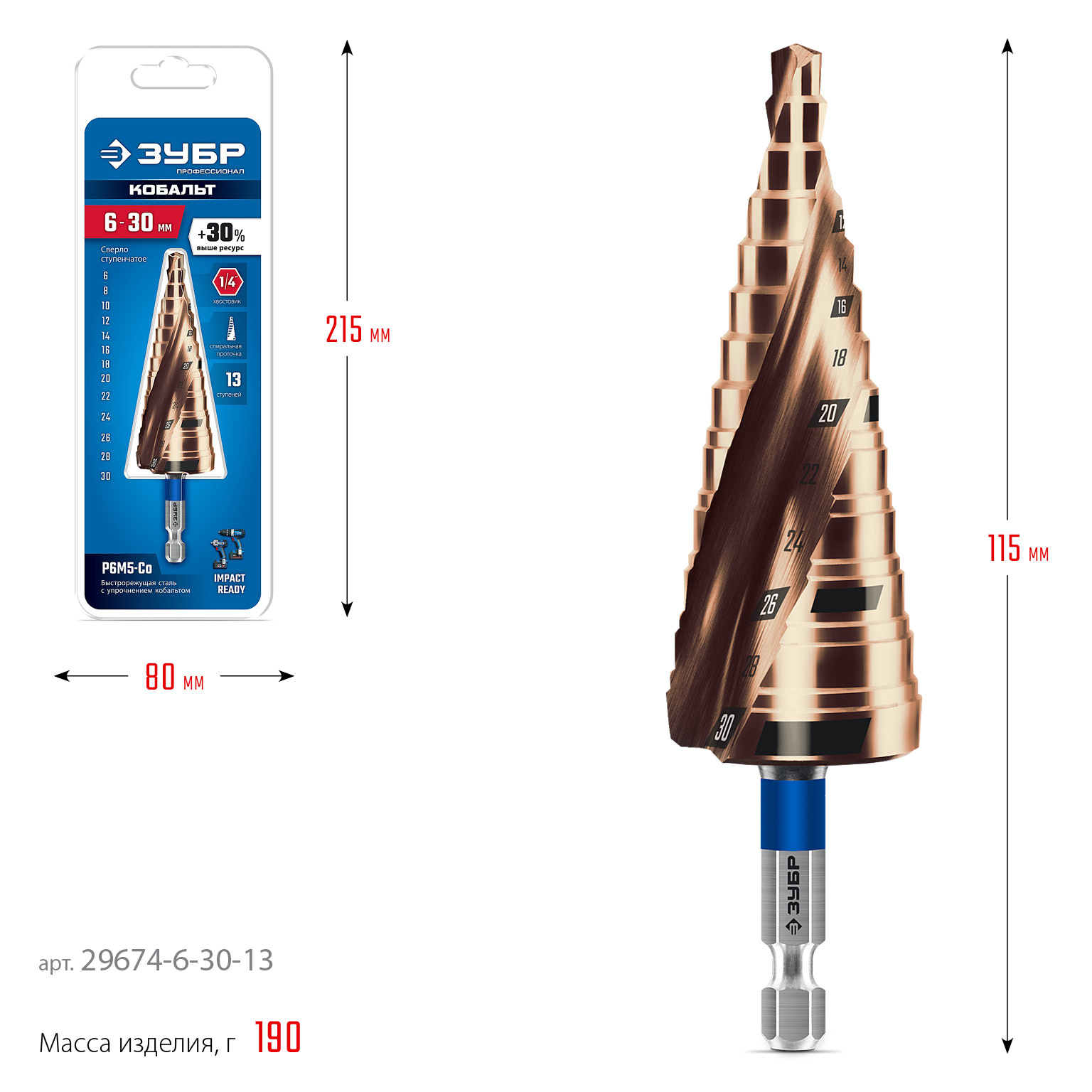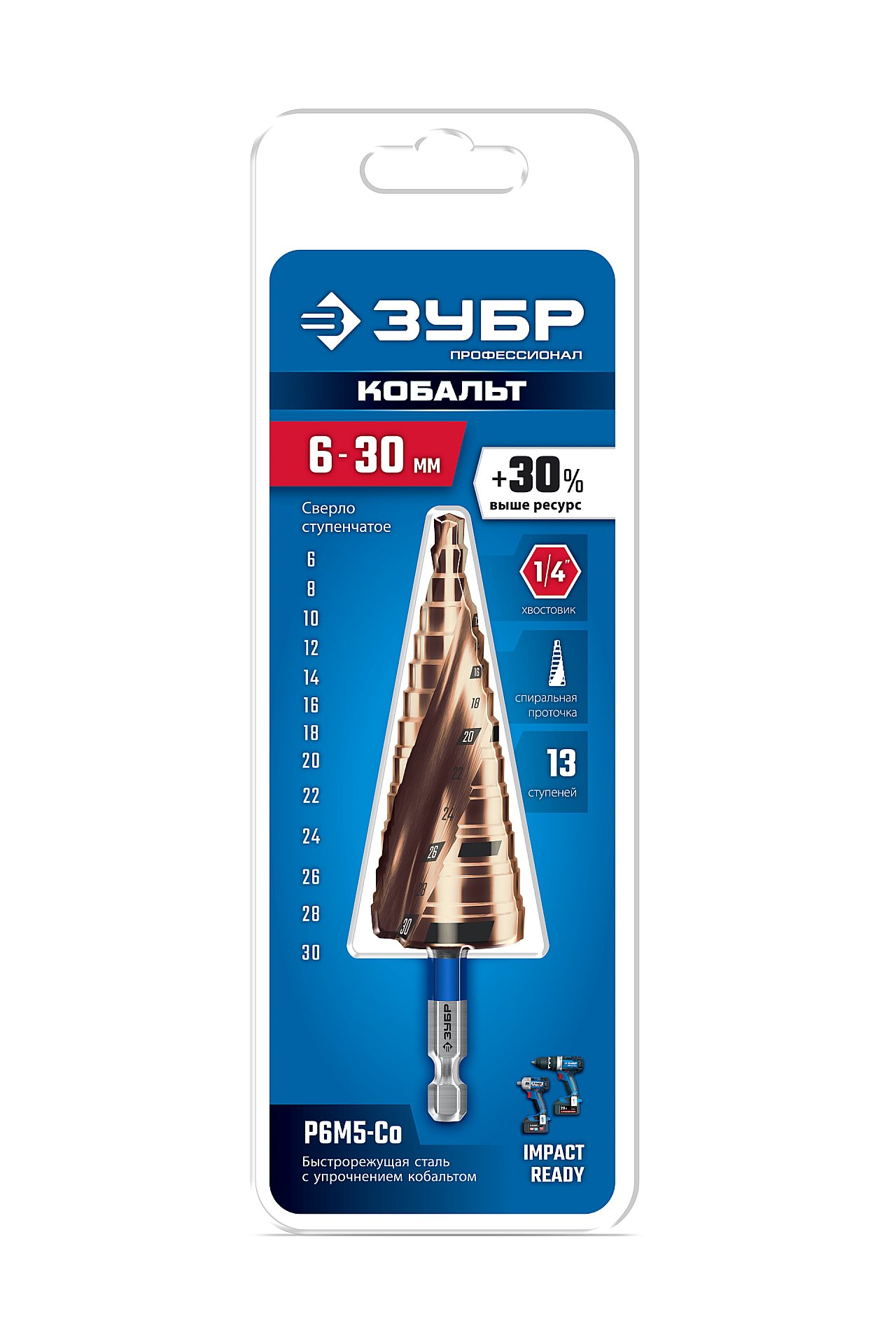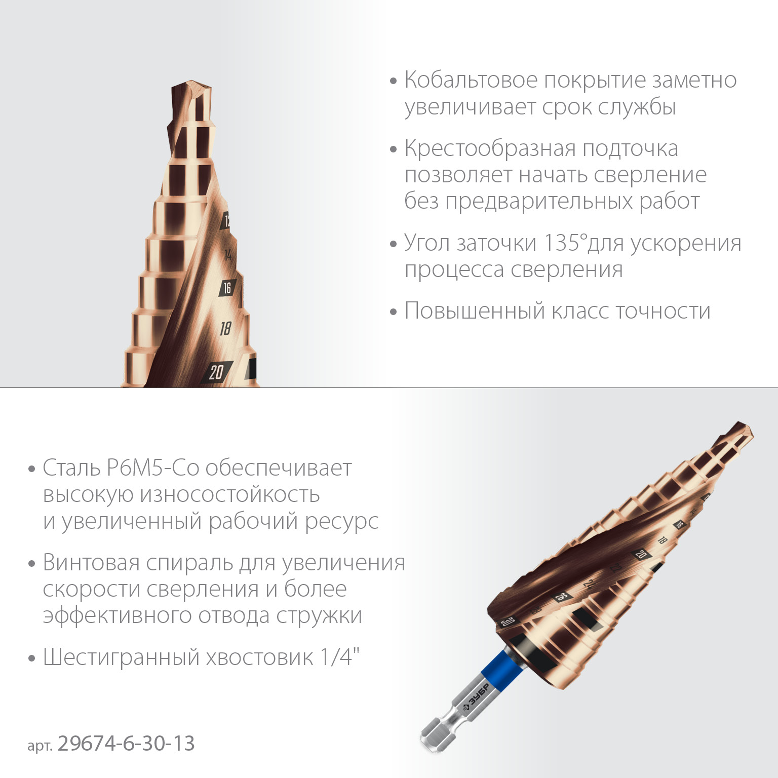 Сверло ступенчатое. ЗУБР КОБАЛЬТ ПРОФЕССИОНАЛ HEX1/4 29674-