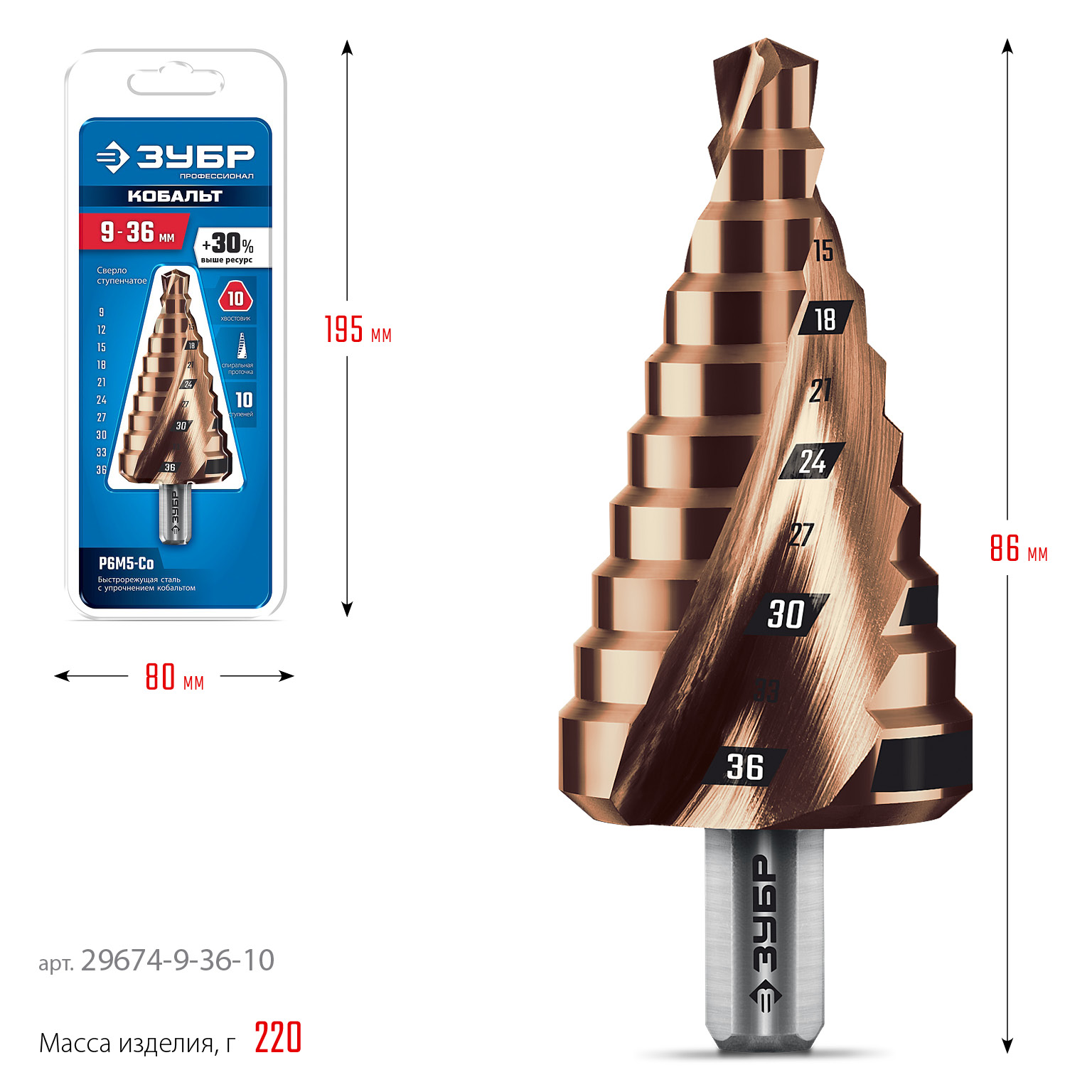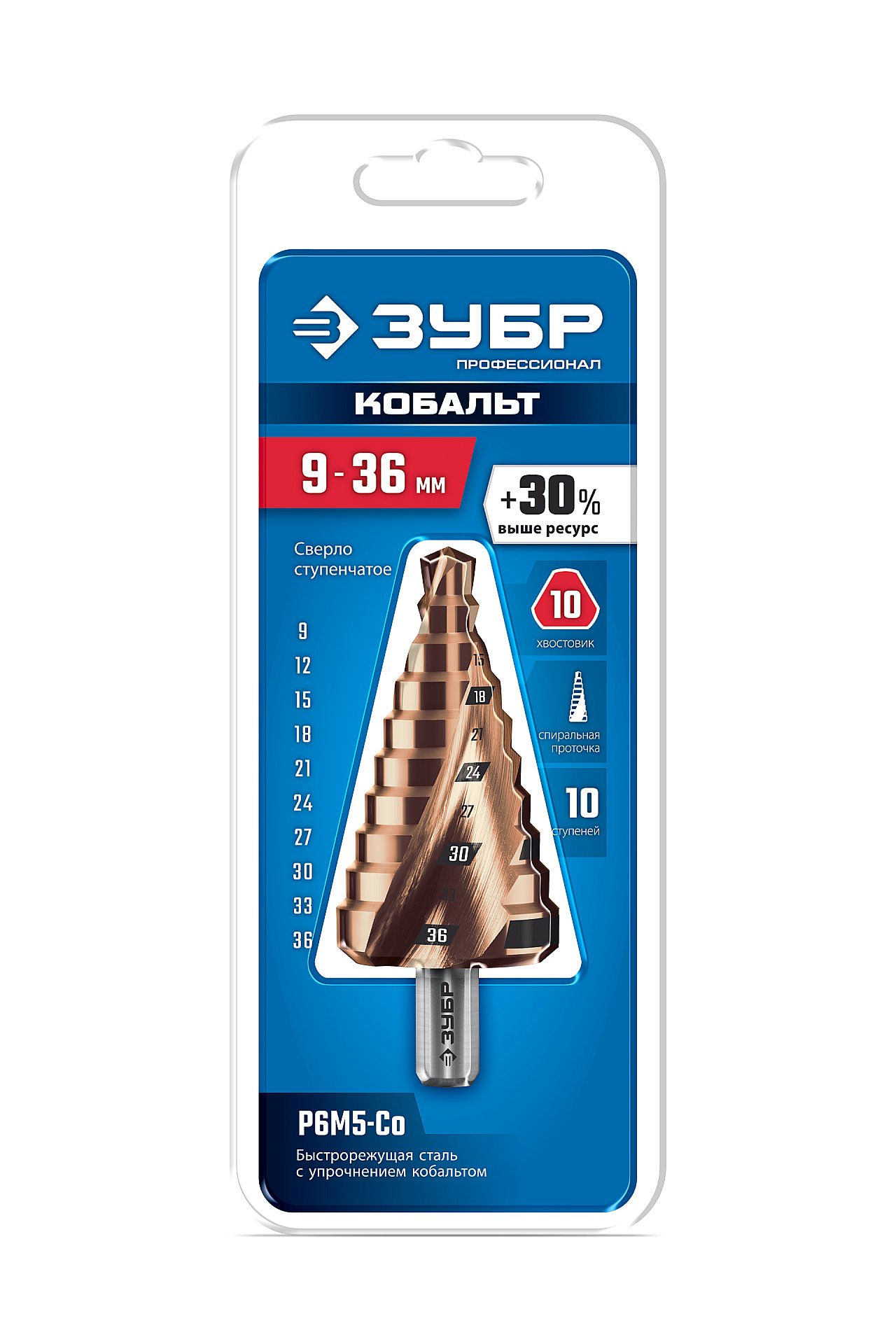 Сверло ступенчатое. ЗУБР КОБАЛЬТ ПРОФЕССИОНАЛ 29674-