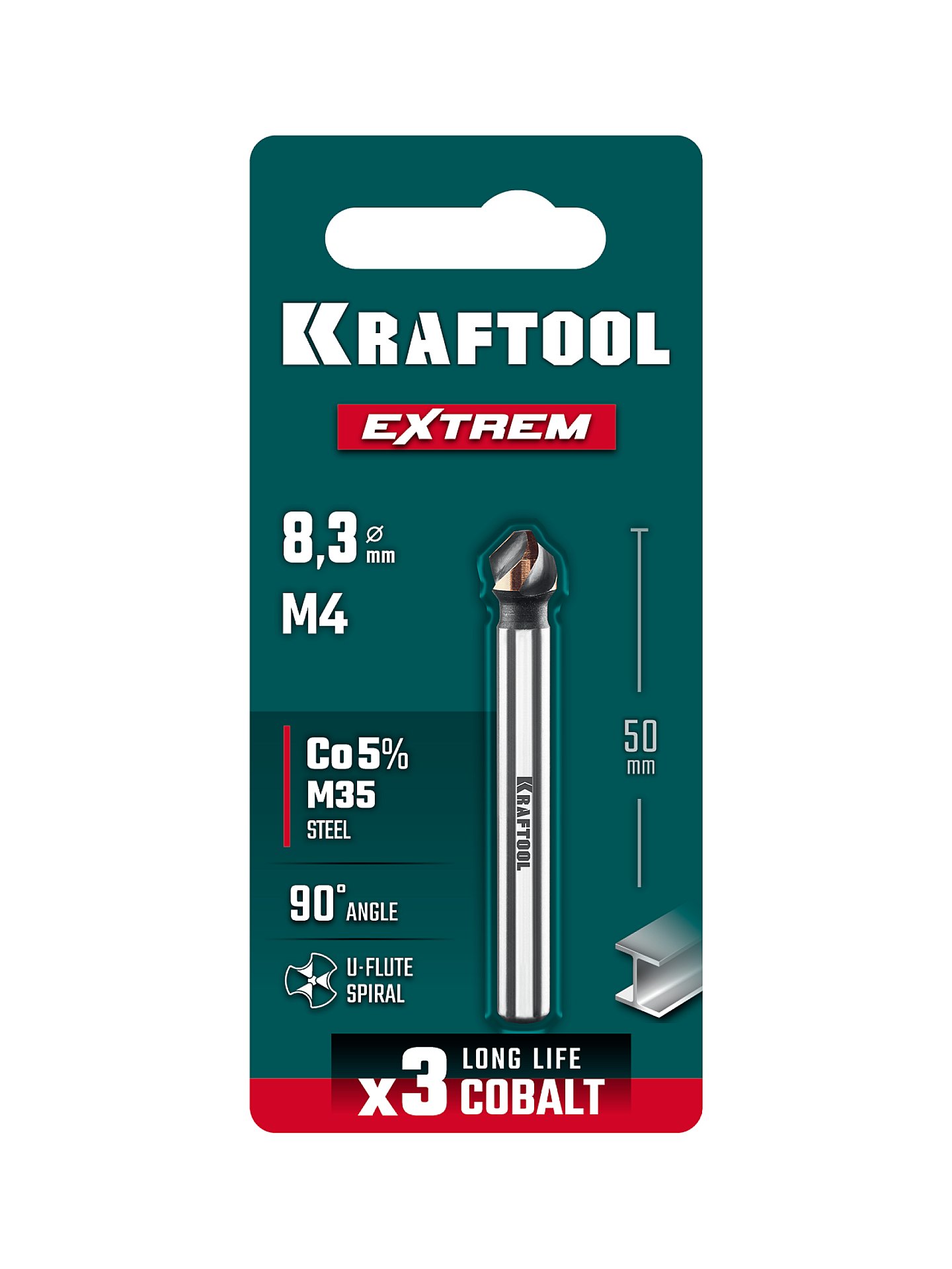29734-4 Конусный зенкер KRAFTOOL EXTREME Со5-А, d 8.3 х 50 мм, сталь M35, U-образная спираль, для раззенковки М4