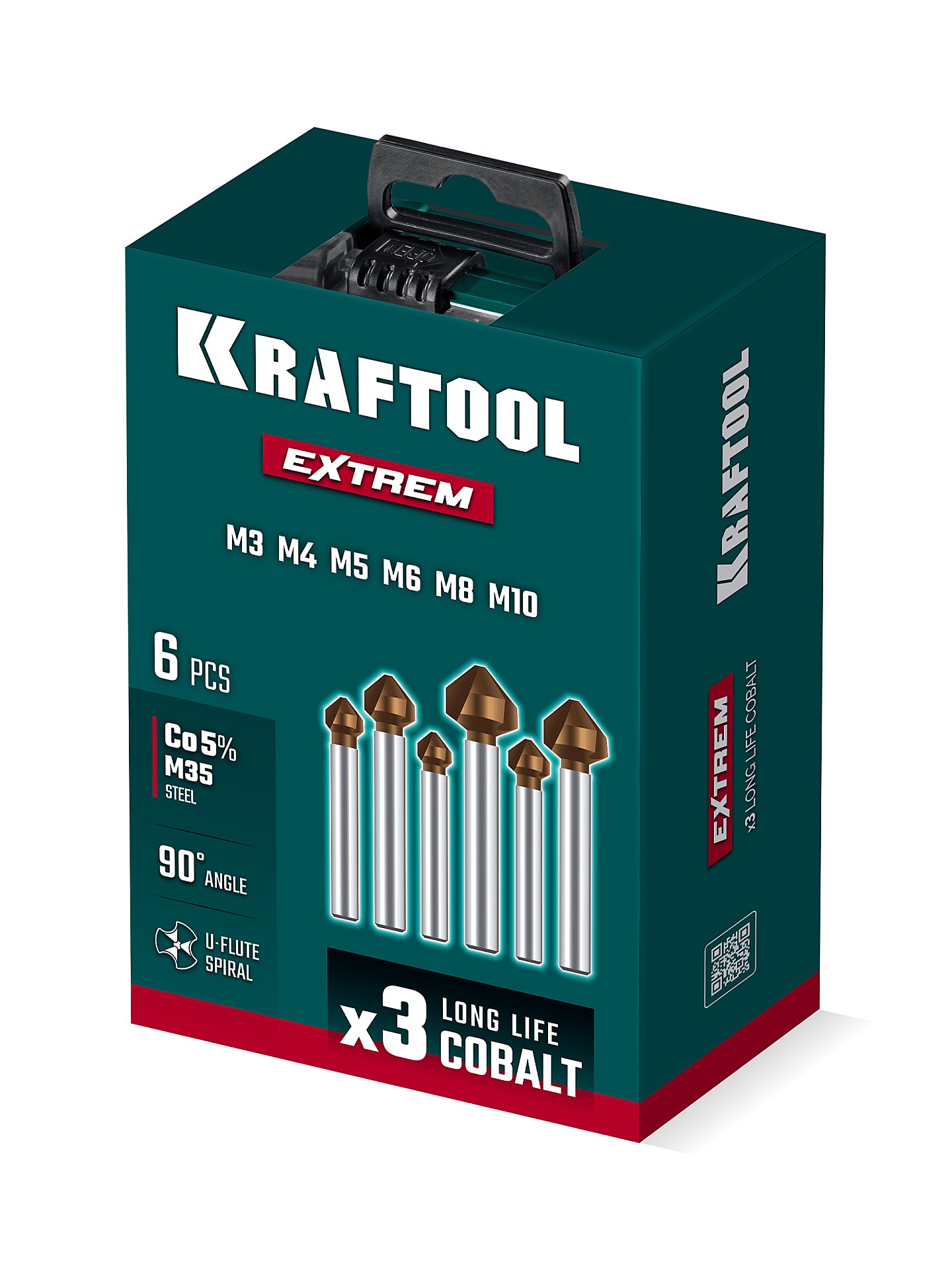 Набор зенкеров KRAFTOOL EXTREME Co5-A, 6 шт (М3–М10), сталь M35, U-образная спираль 29734-H6 — непревзойденное качество и долговечность при раззенковке отверстий для установки винтов в потай.
