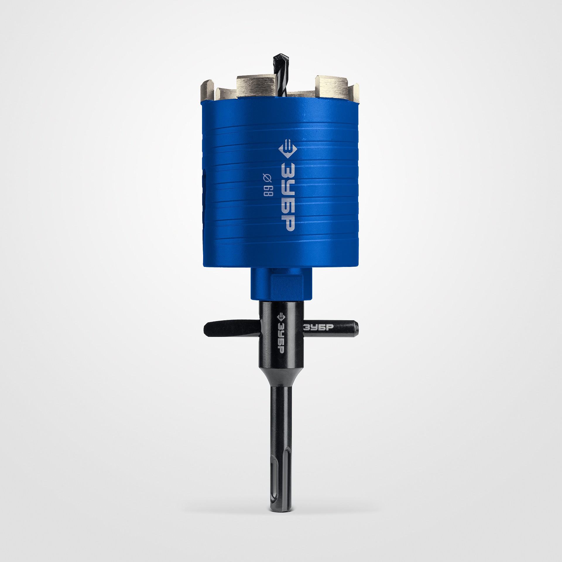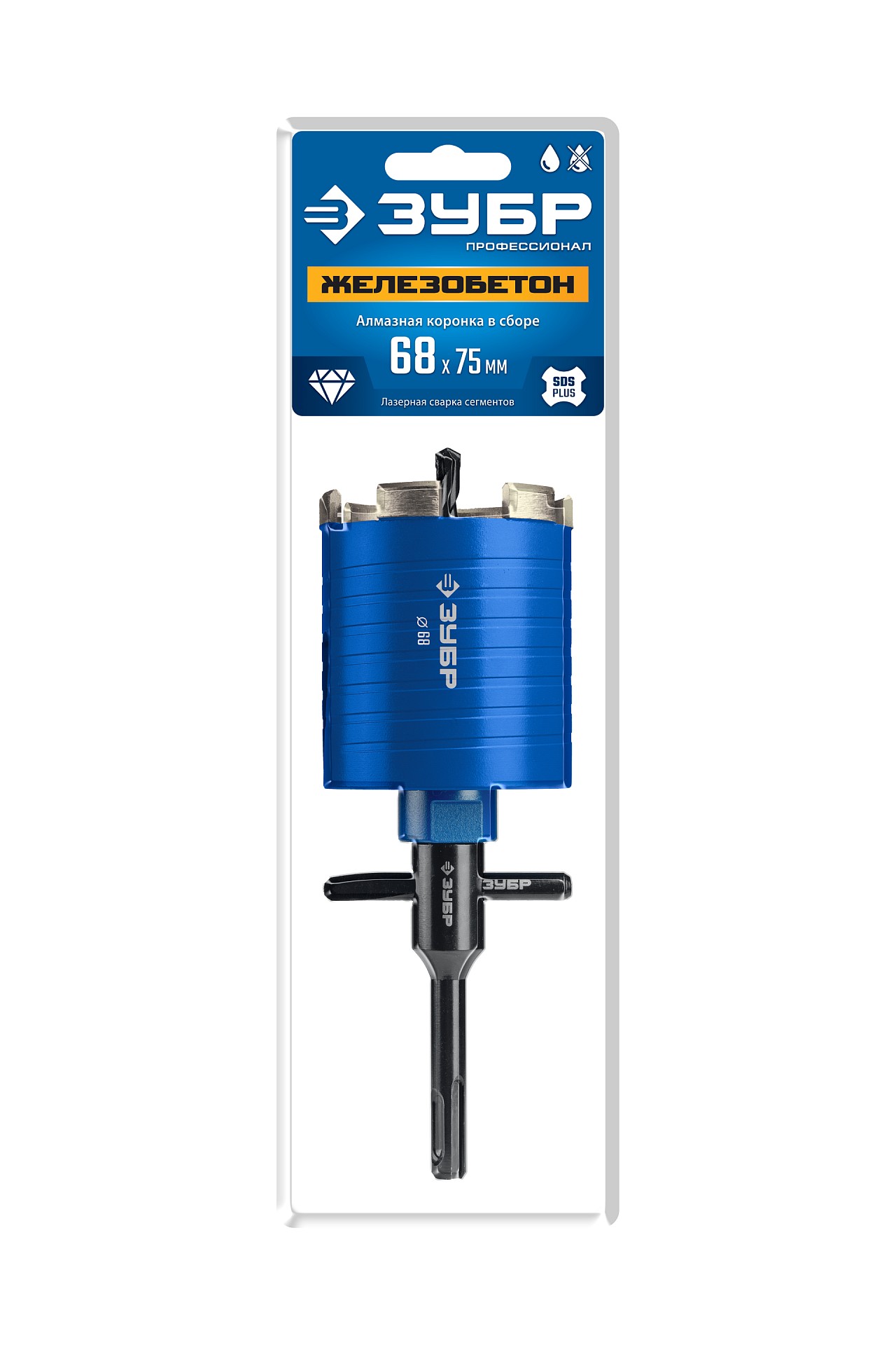 Алмазная сегментная коронка для подрозетников, ЗУБР АСК d 68 мм (М16, рабочая глубина 75 мм, лазерная сварка), Профессионал 29875-68 - применяется для сверления отверстий в железобетоне, бетоне и кирпиче. Используются с перфораторами в безударном режиме и дрелями с функцией микроудара мощностью от 1,0 кВт.