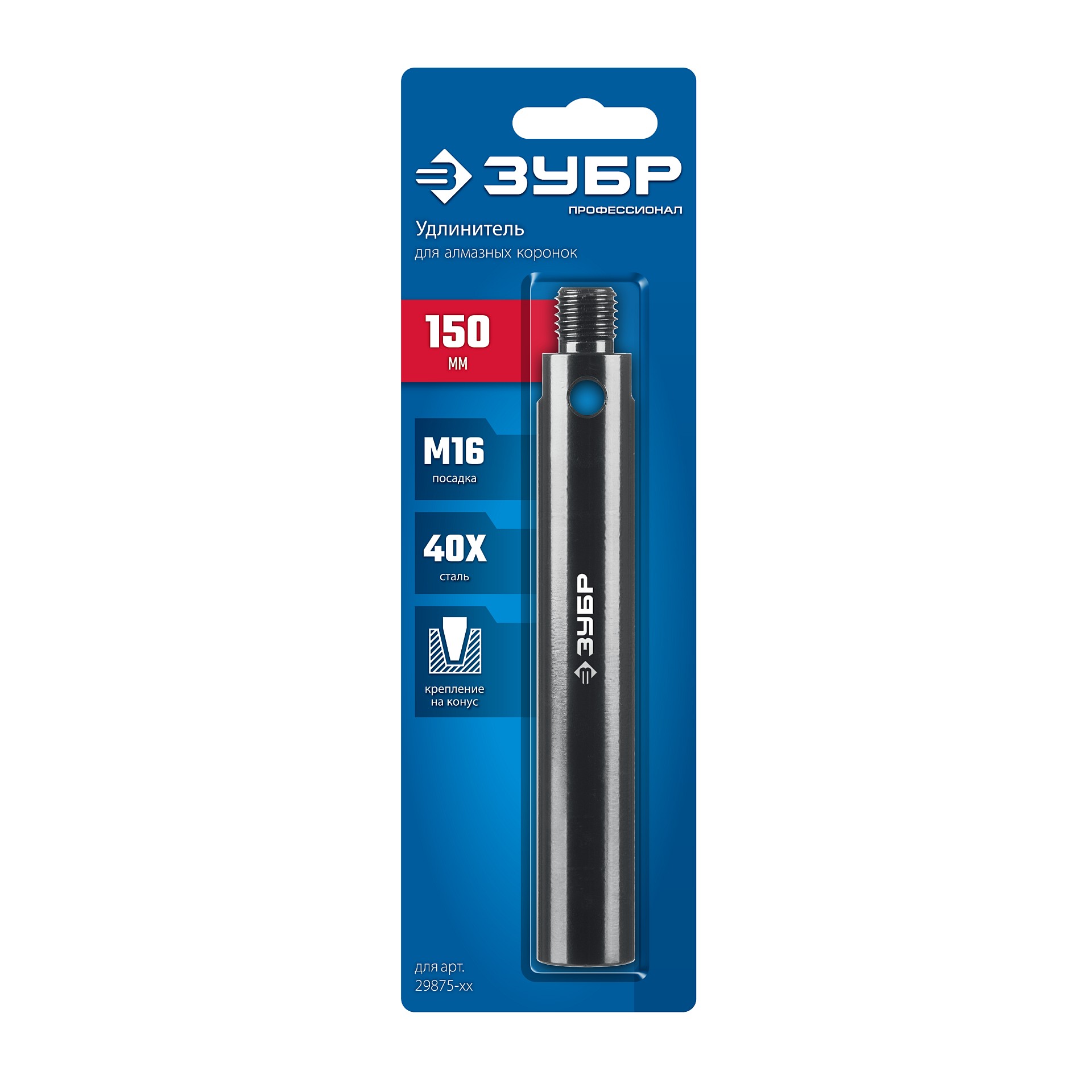 Удлинитель стальной, ЗУБР L 150 мм, М16, Профессионал 29876-150 - применяется для увеличения глубины сверления. Возможно использование как одного так и нескольких удлинителей путем вкручивания друг в друга.