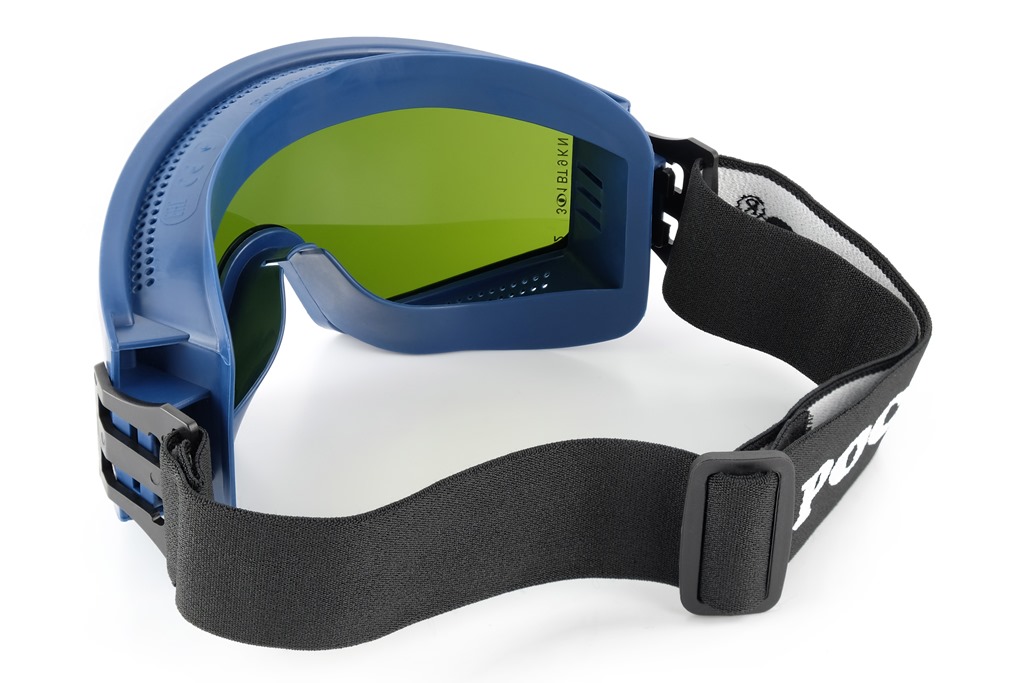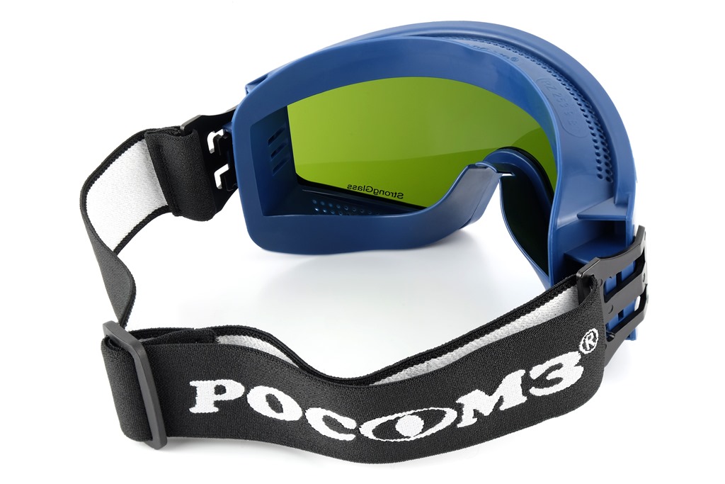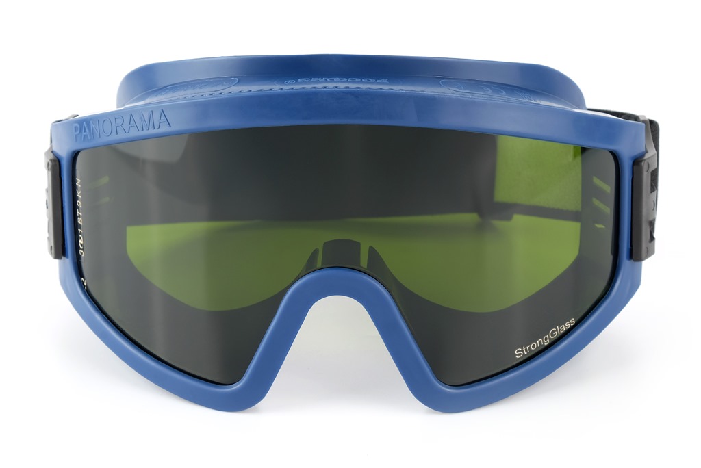 Очки с прямой вентиляцией с панорамным защитным стеклом-светофильтром зелёного цвета из поликарбоната (РС StrongGlassTM) с влагостойким, двусторонним суперпрочным, твердым и одновременно незапотевающим покрытием (без потери свойств от времени). Обеспечивают защиту глаз от высокоскоростных летящих частиц со среднеэнергетическим ударом, абразива, капель жидкостей (в т.ч. химических растворов), УФ-излучения, повышенная защита от искр и брызг расплавленного металла и высокой температуры.