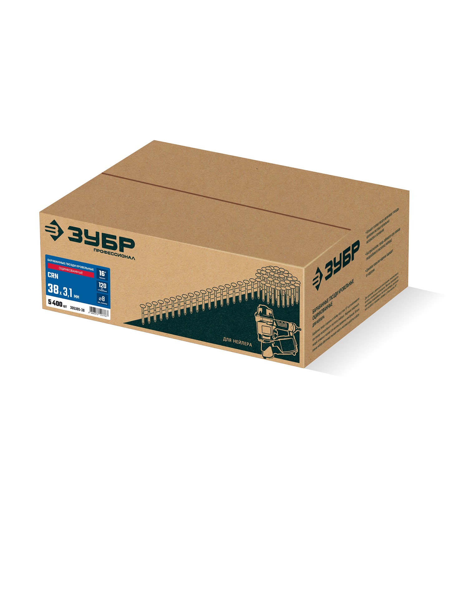 Барабанные гвозди кровельные оцинкованные, CRN 38 х 3.1 мм, 5400 Зубр 305385-38 - предназначены для крепления к деревянным конструкциям тонколистового металла и кровельных материалов.